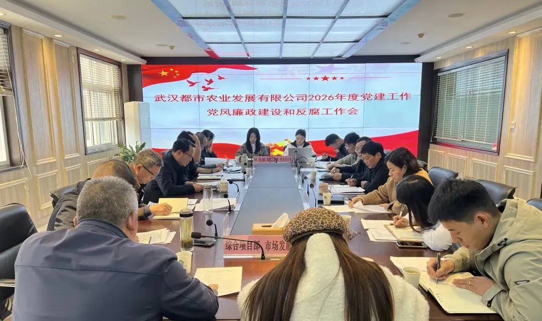 3月24日,武汉都市农业发展有限公司召开2026年度党建工作、党风廉政建设和反腐败工作会议,深入传达学习中央省市纪委全会精神、全市国资国企领域突出问题专项整治动员会议精神及《武汉农业集团国资国企领域突出问题专项整治实施方案》重点要求,研究部署都市农业公司专项整治相关工作、传达学习王卫东董事长在集团2026年度党建工作、党风廉政建设和反腐败工作会议上的讲话精神,认真落实农业集团工作要求,总结2025年主要工作,部署2026年重点任务。都市农业公司党总支书记、董事长董炼出席会议并讲话,公司领导班子成员参加会议。