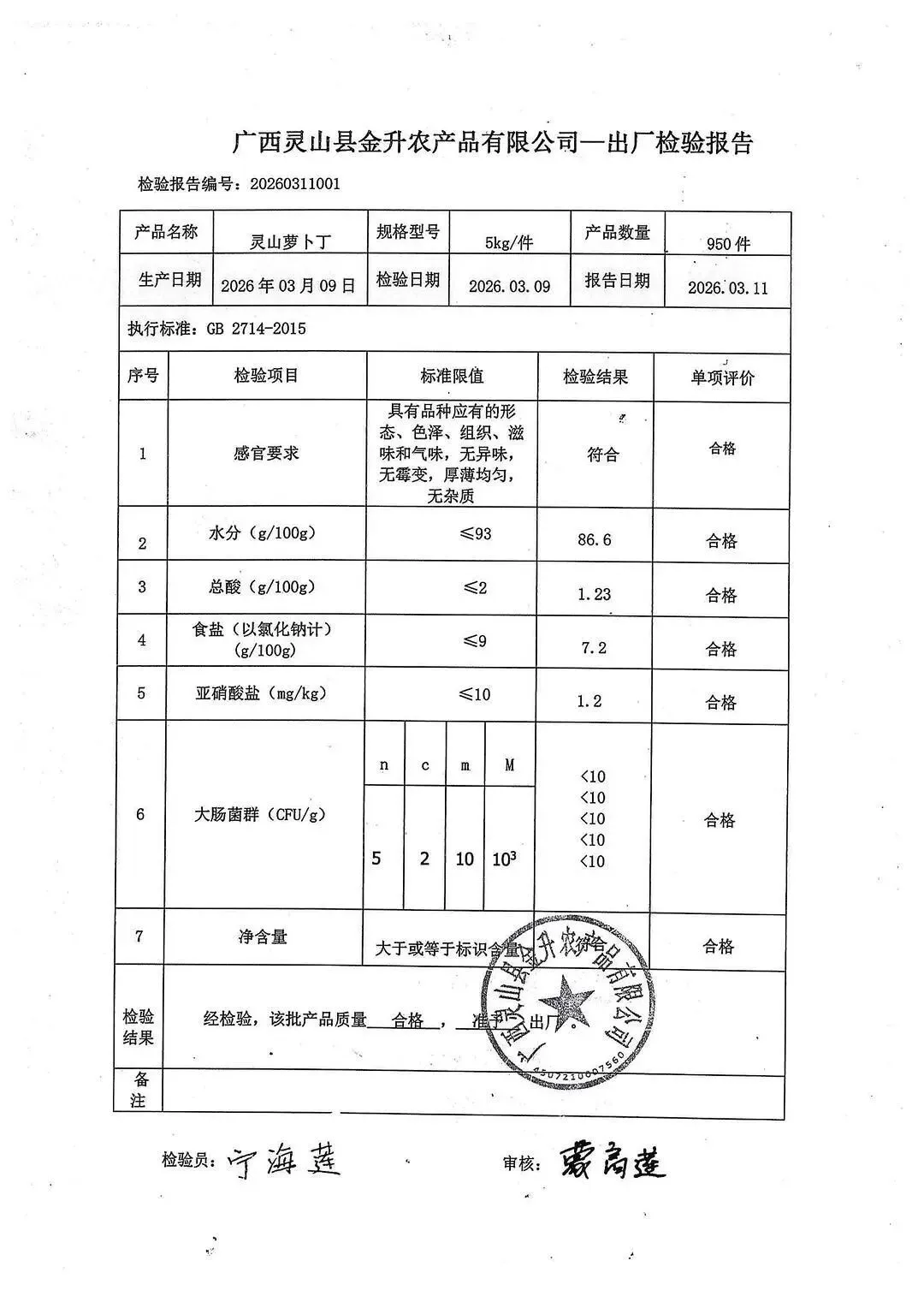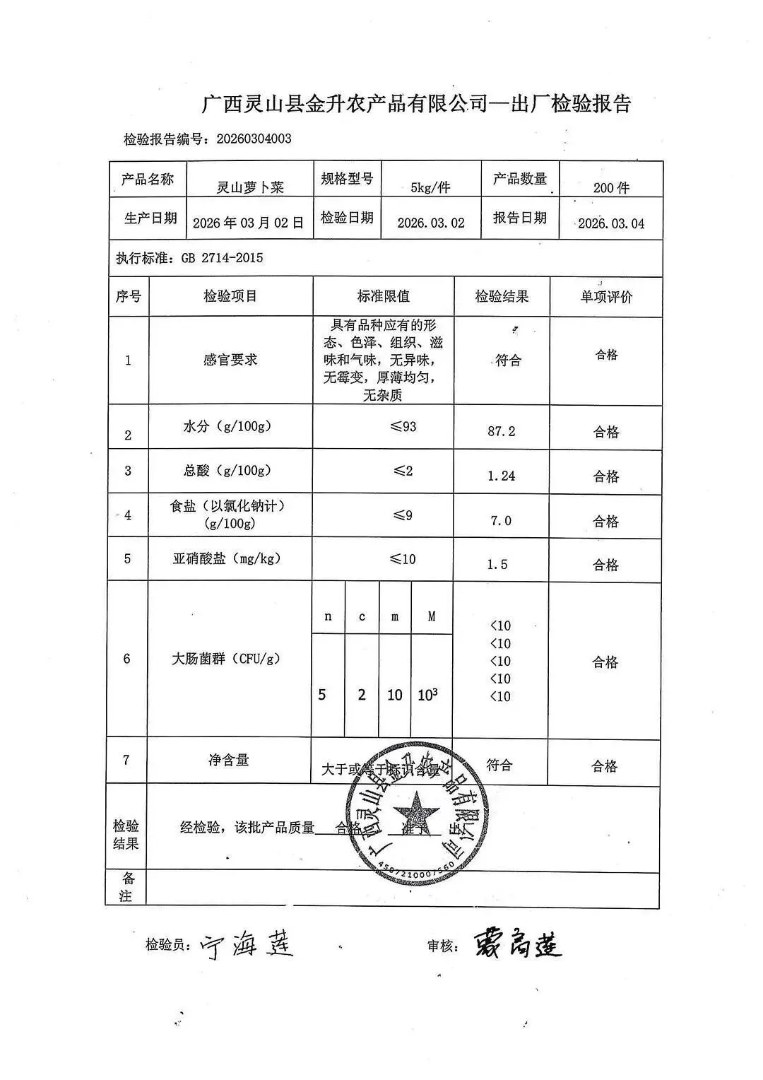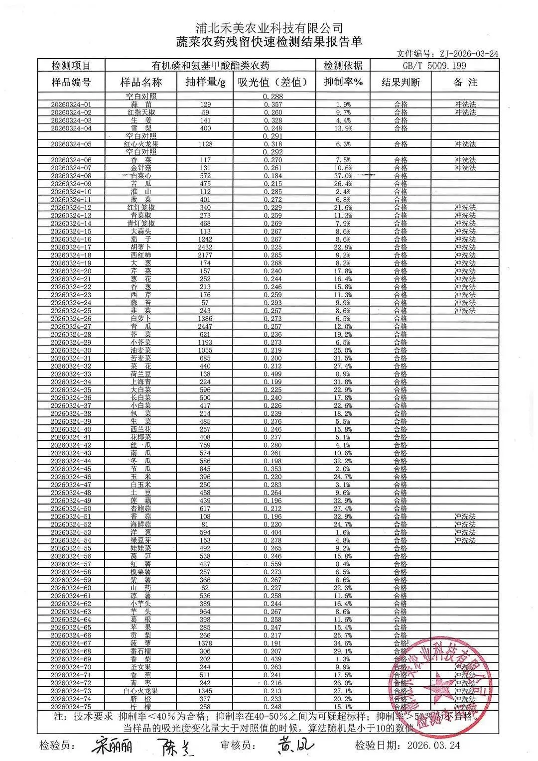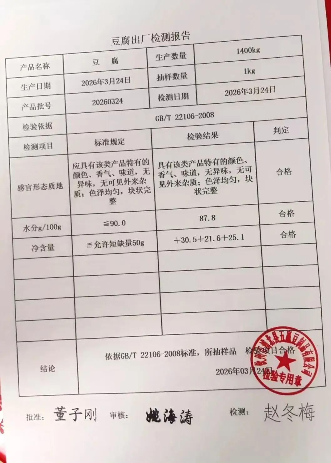 金浦供应链&禾美农业-03月25日蛋类、酱腌菜、肉类、蔬菜、水豆腐、鲜湿淀粉条检测 报告