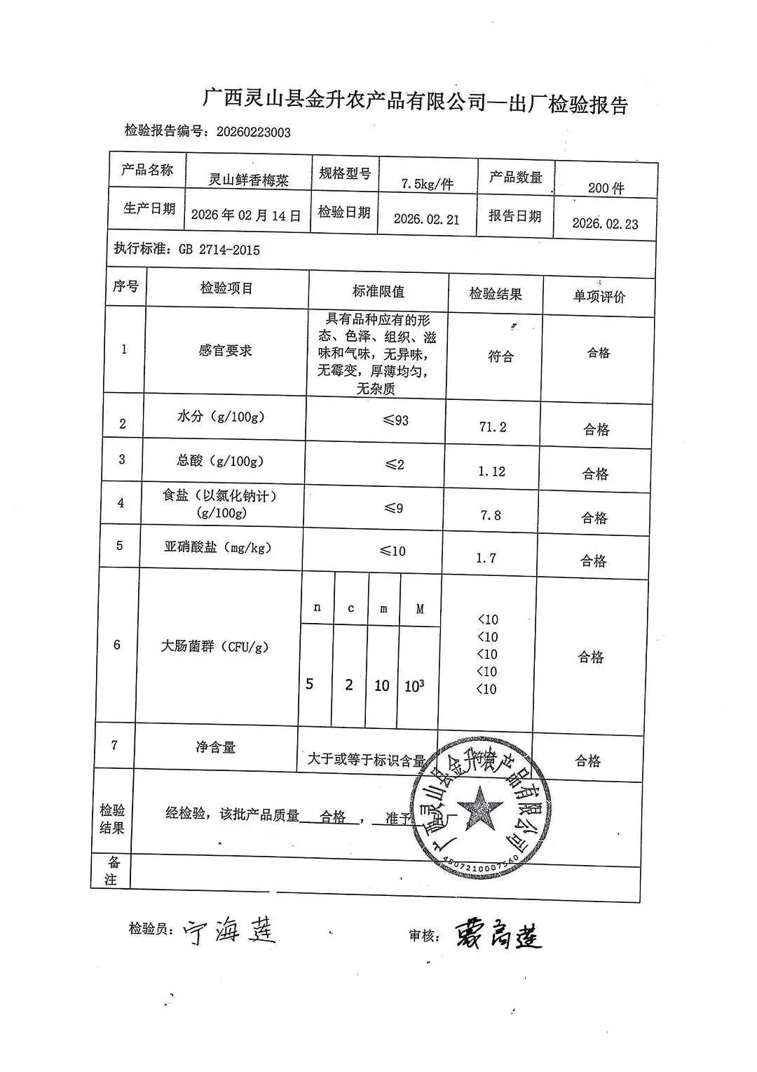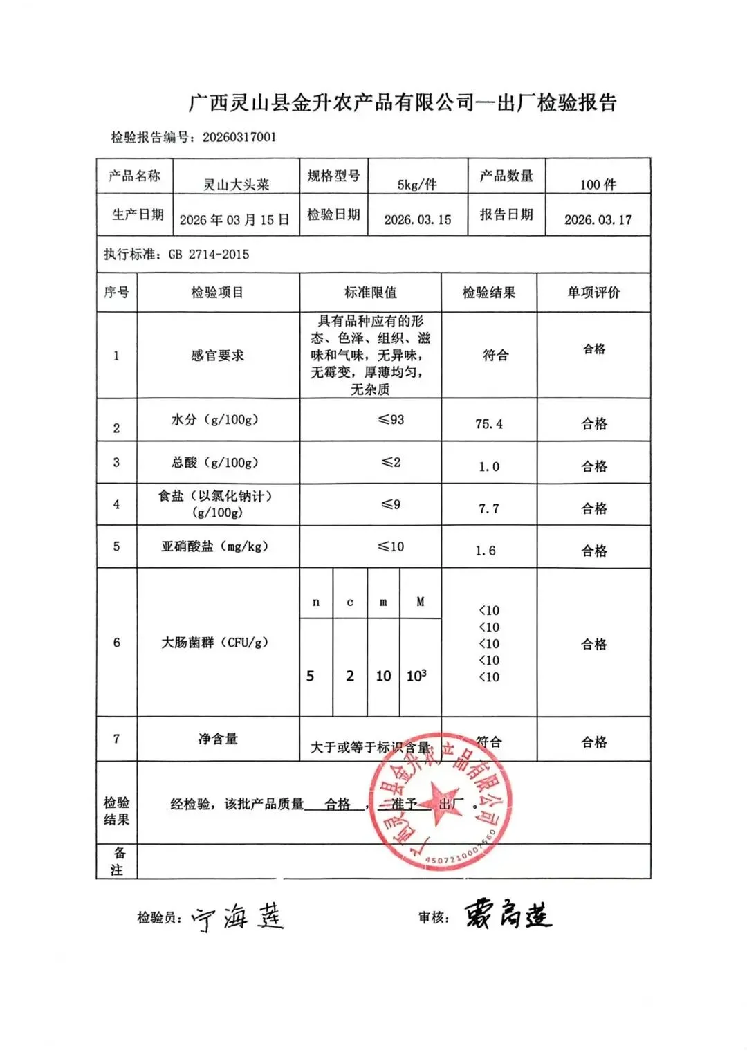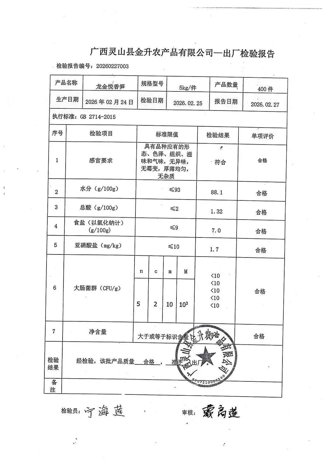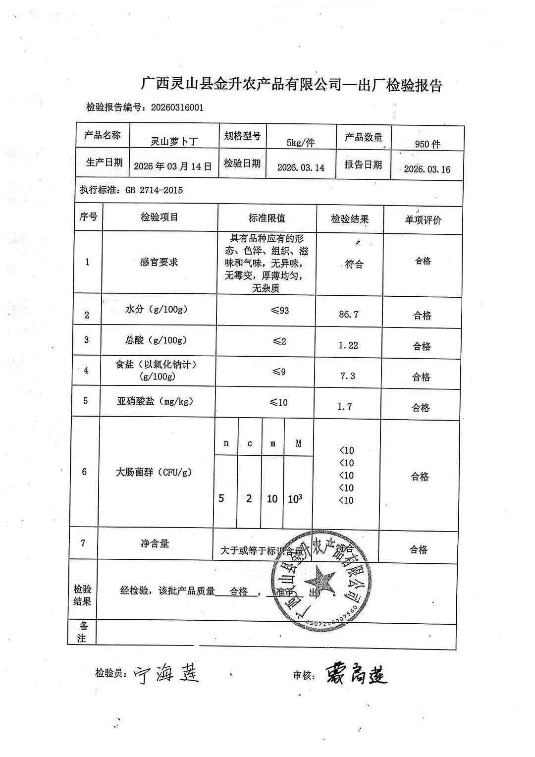 金浦供应链&禾美农业-03月25日蛋类、酱腌菜、肉类、蔬菜、水豆腐、鲜湿淀粉条检测 报告
