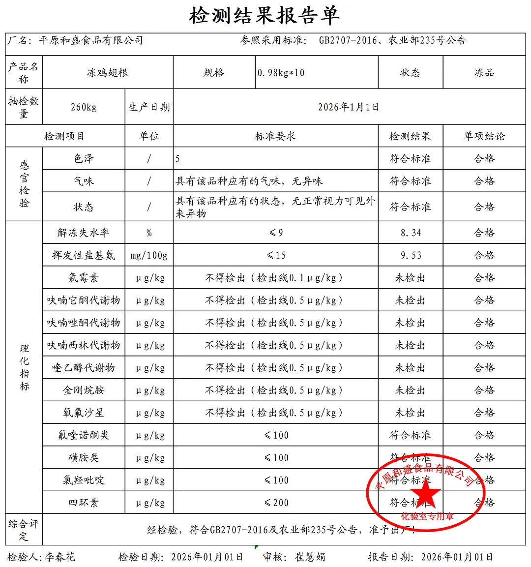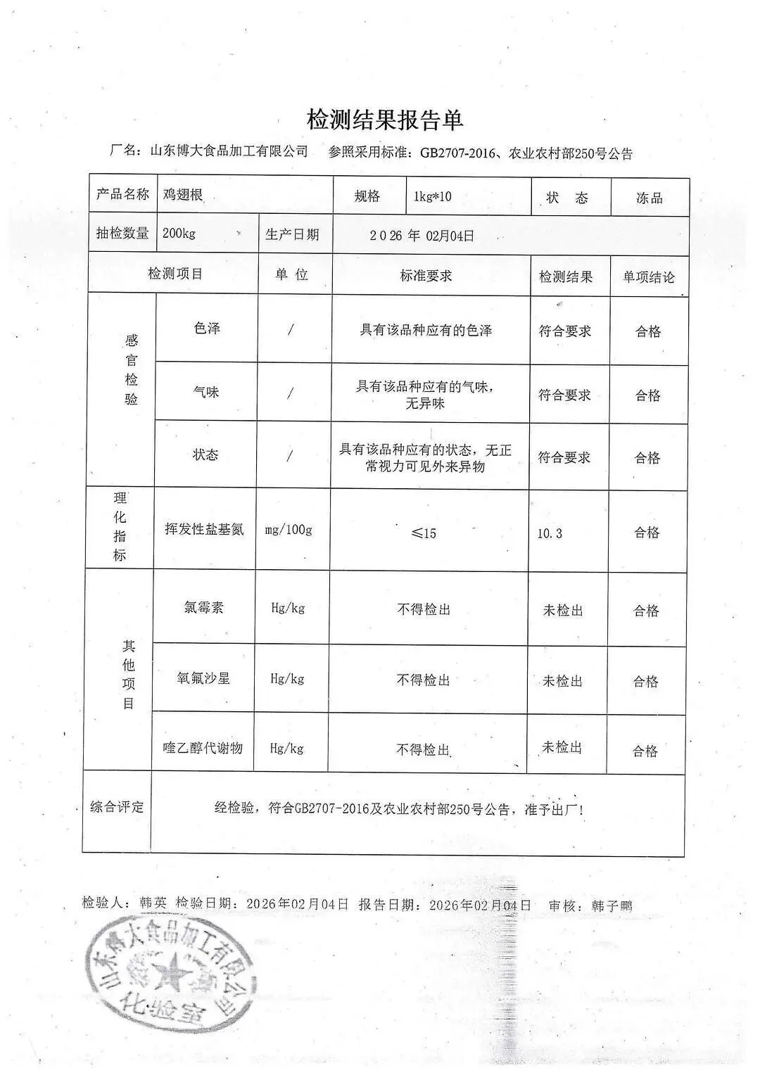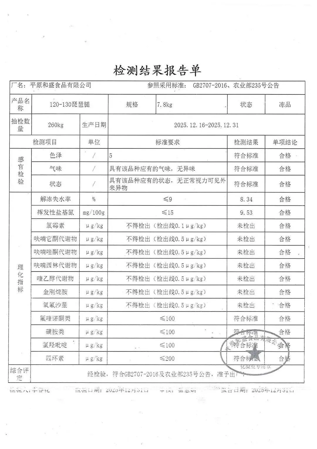 蛋类、酱腌菜、肉类、蔬菜、水豆腐、鲜湿淀粉条检测报告