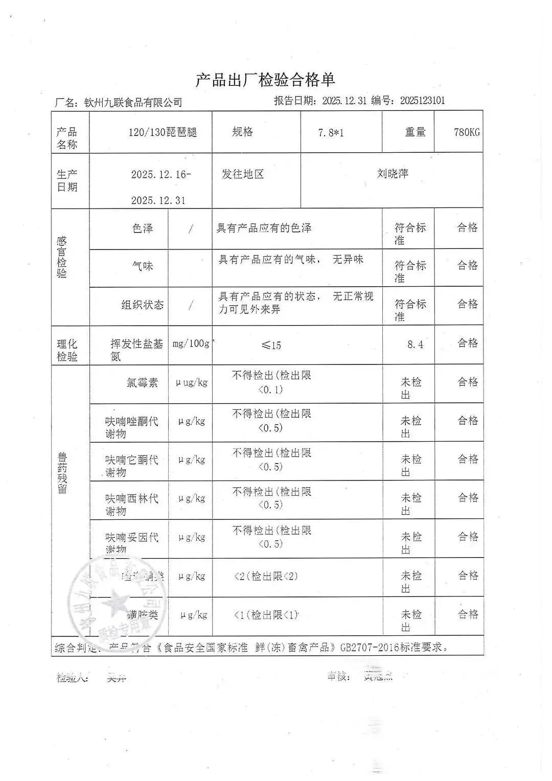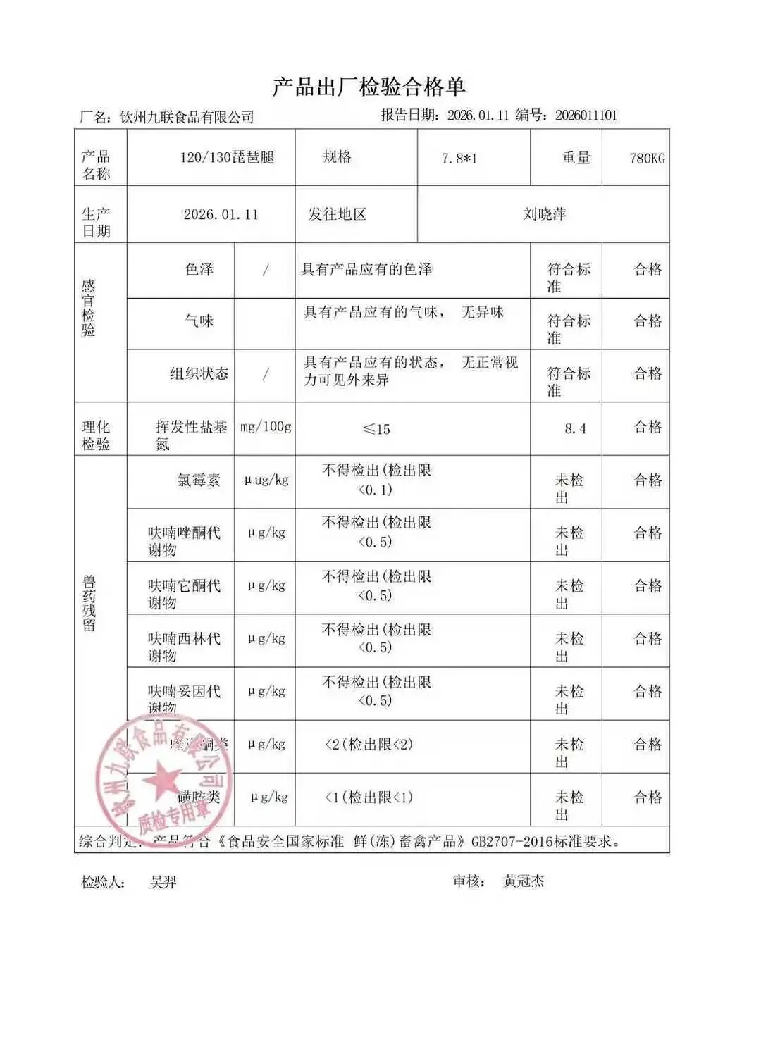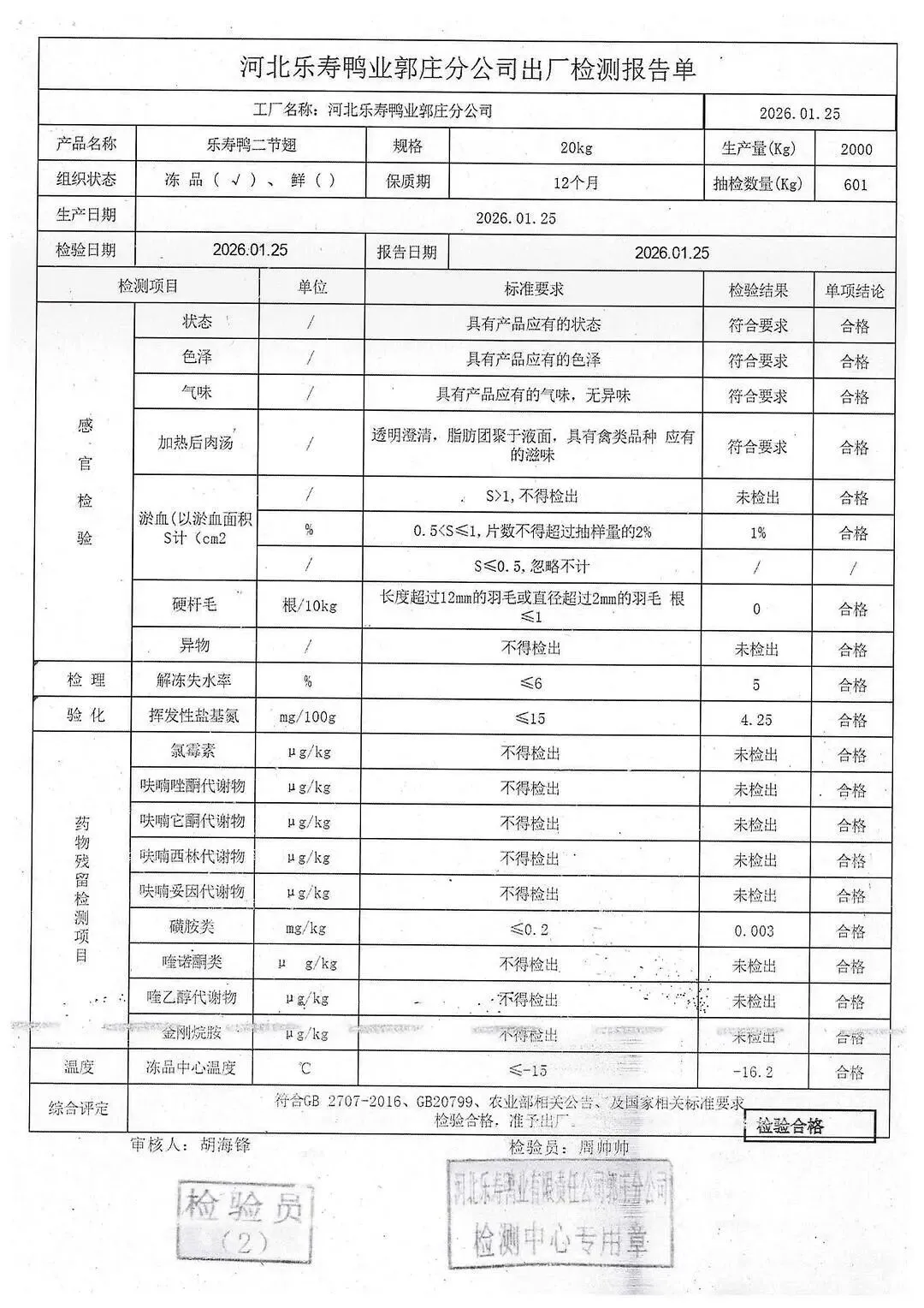 蛋类、酱腌菜、肉类、蔬菜、水豆腐、鲜湿淀粉条检测报告