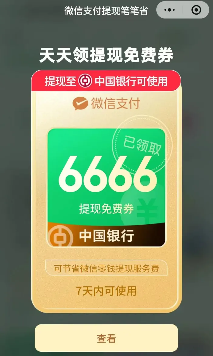 微信提现免费额度,最近有6666元免费提现券