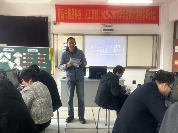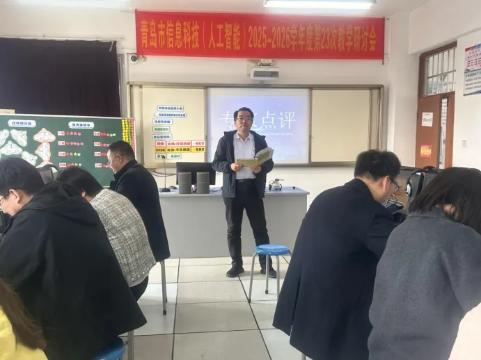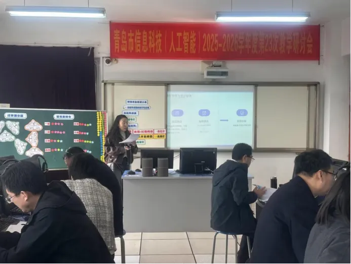 2026 年 3 月 20 日,青岛市信息科技(人工智能)2025 - 2026 学年度第 23 次教学研讨会在山东省青岛第三十三中学顺利举行。本次研讨会由青岛市教育科学研究院主办,李沧区教育和体育局承办,采用线上与线下相结合的教研形式,围绕 “立足信息科技课程教学,落实人工智能通识教育” 这一主题,通过课例观摩、经验分享与深度研讨,共同探寻信息科技教学的新路径。