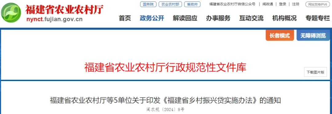 福建省农业农村厅等5单位关于印发《福建省乡村振兴贷实施办法》的通知