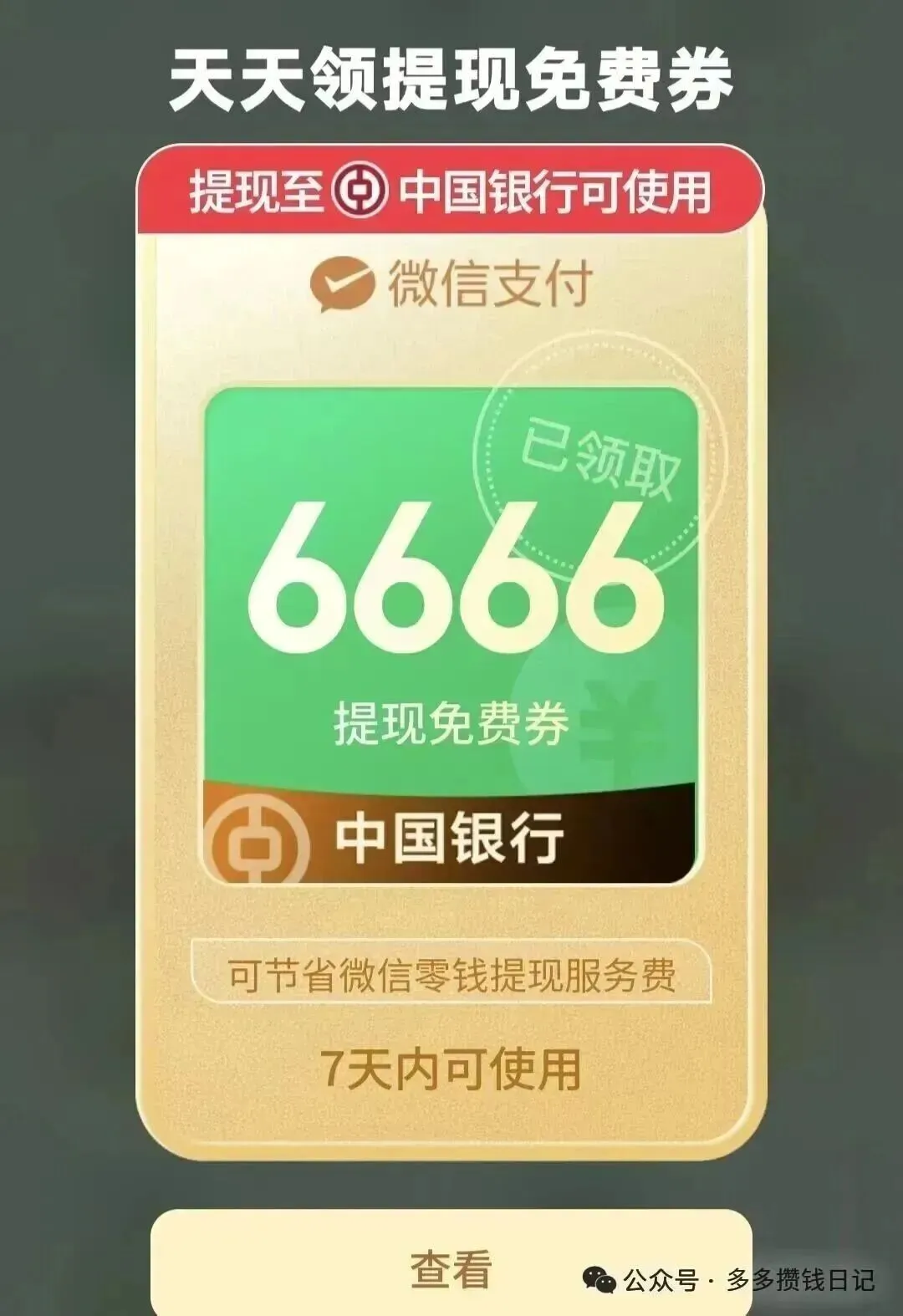 微信每天抽提现免费券