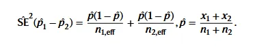 剪接到[2,nk]。然后使用分数检验(Z)检验,对两个比例进行测试,标准误用nk,eff计算: