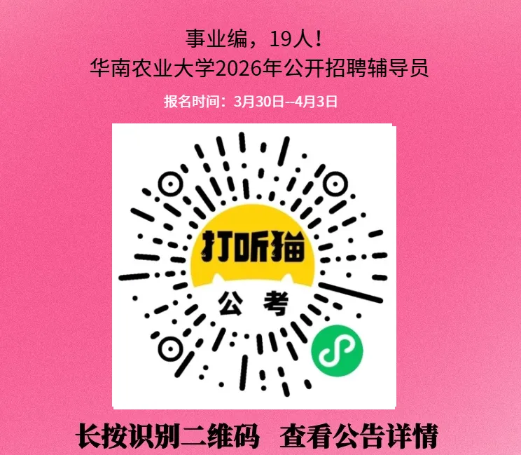 >【广东教师招聘】事业编,19人!华南农业大学2026年公开招聘辅导员!