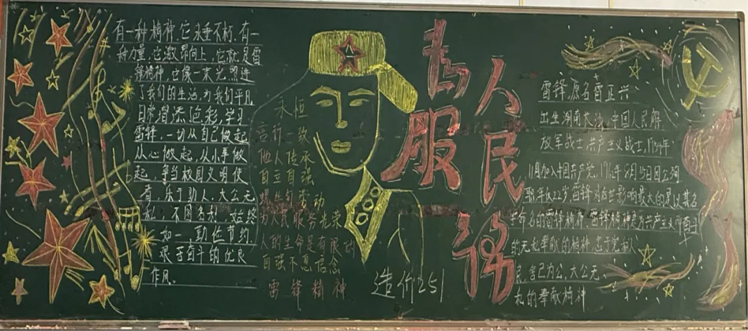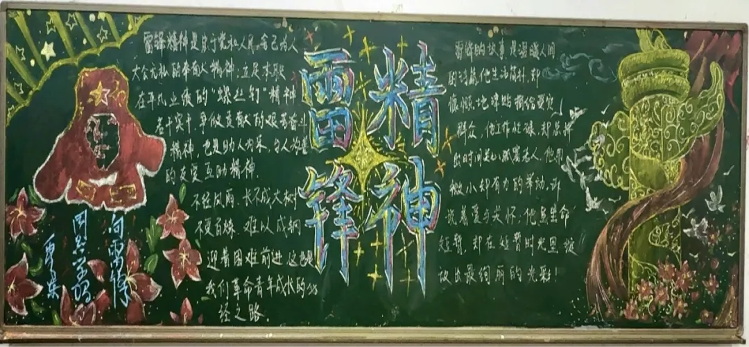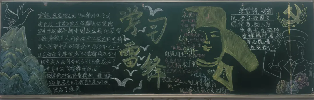 雷锋精神是中华民族宝贵的精神财富,是社会主义核心价值观的生动体现,更是激励一代又一代青年向上向善、无私奉献的精神灯塔。“学习雷锋月”主题黑板报制作活动,是对雷锋同志的深切缅怀,更是对雷锋精神的传承与弘扬。新时代为青年赋予了续写雷锋故事、传递温暖力量的责任与使命,唯有引导广大大学生深刻领悟雷锋精神的时代内涵,将奉献、友爱、互助、进步的志愿精神融入日常学习生活,方能凝聚起崇德向善、砥砺前行、服务社会的青春力量。