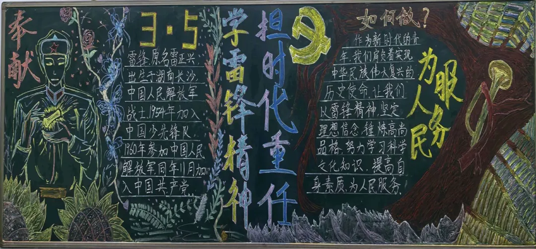 此次黑板报评比活动,不仅是一次艺术创作的比拼,更是一场精神的洗礼与传承。它让我们看到,雷锋从未远去,他的精神正以青春的姿态,在农林校园里生根发芽。未来,希望每一位农林学子都能将雷锋精神化作日常行动:在课堂上刻苦钻研,做专业学习的“螺丝钉”;在生活中乐于助人,做温暖他人的“小太阳”;在社会上勇于担当,做新时代的“活雷锋”。让雷锋精神如春风化雨,滋养我们成长,照亮我们前行的道路。