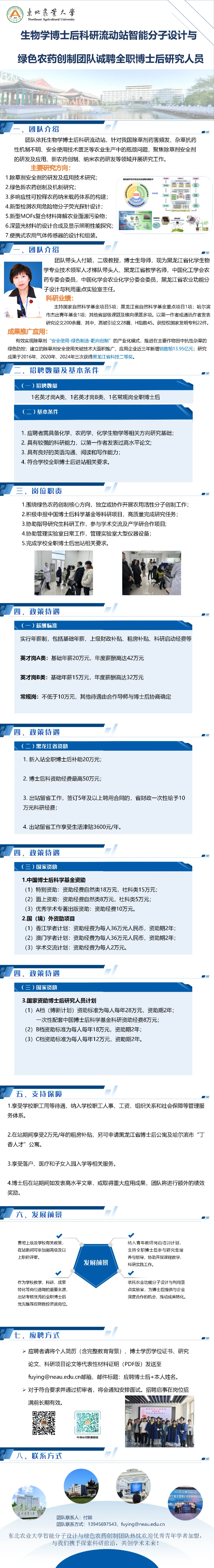 第十期:东北农业大学生物学博士后科研流动站智能分子设计与绿色农药创制团队诚聘全职博士后研究人员
