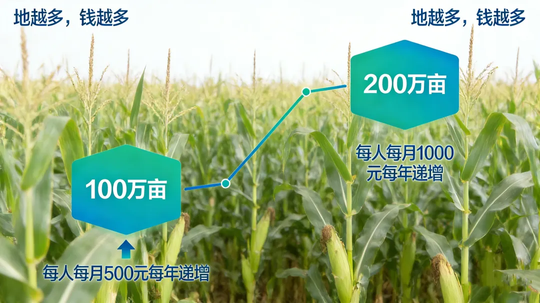 根据方案,当公司土地托管总面积达到 100万亩 时,符合条件的员工将享受 每人每月500元每年递增的长期激励奖金;当面积突破 200万亩,奖金将进一步提升至每人每月1000元每年递增。只要公司规模稳定在相应目标以上,奖金将持续发放,员工的收入将随着企业的发展稳步增长。