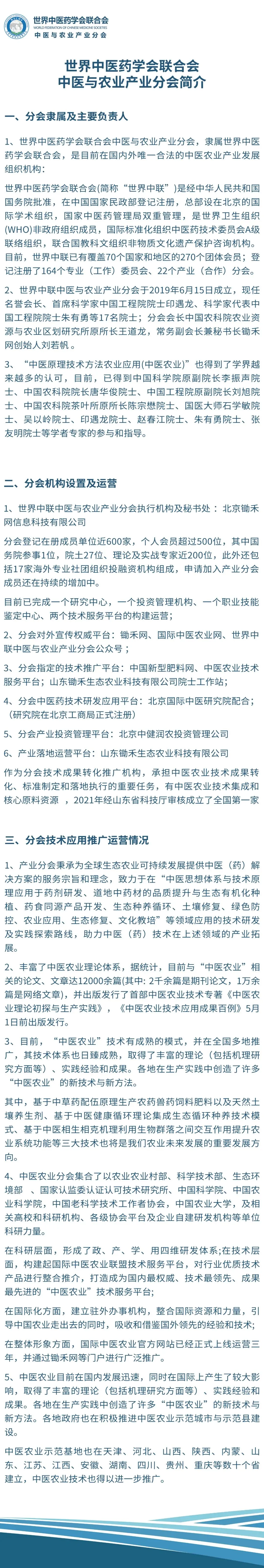 >世界中联中医与农业产业分会简介