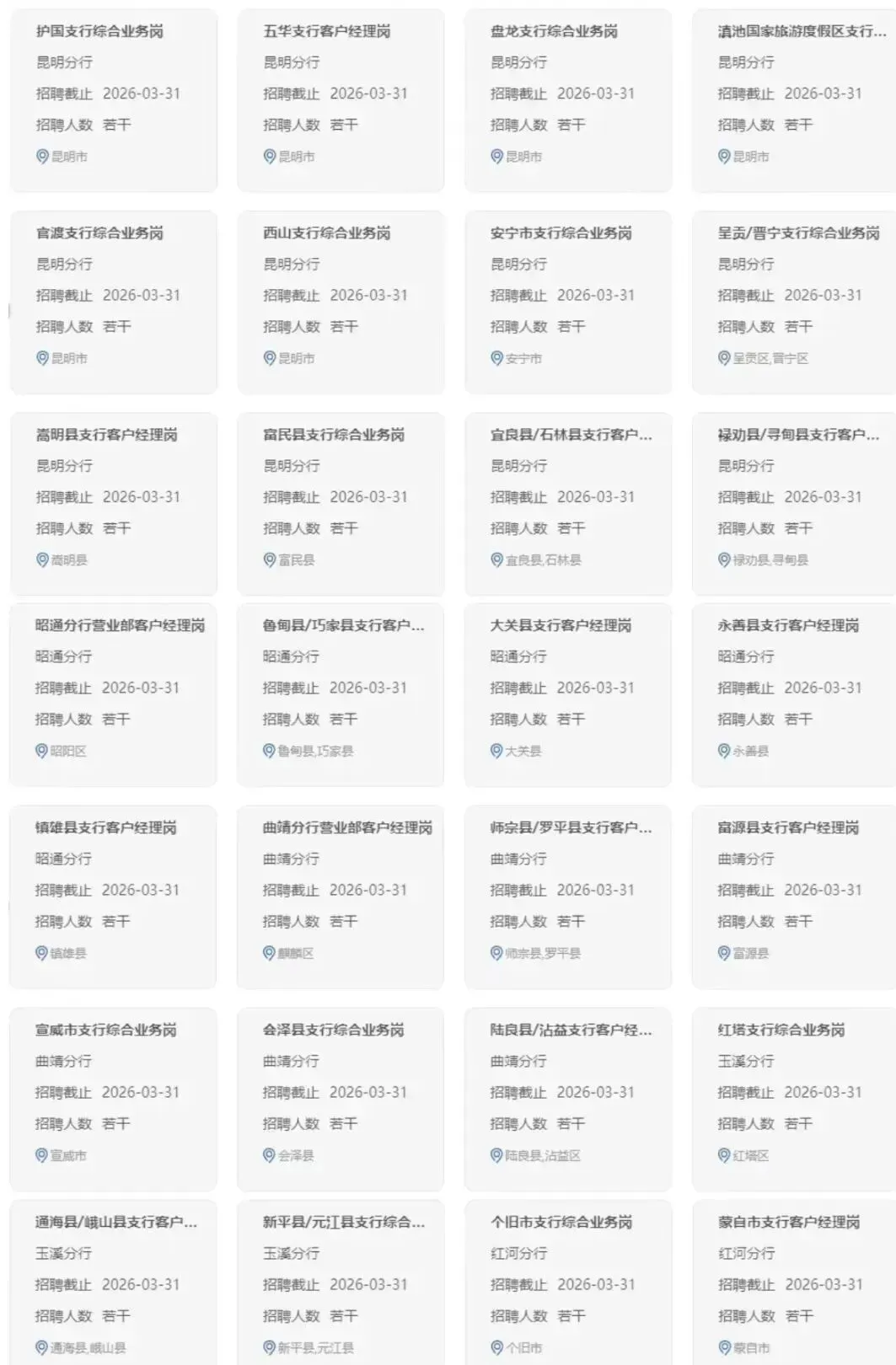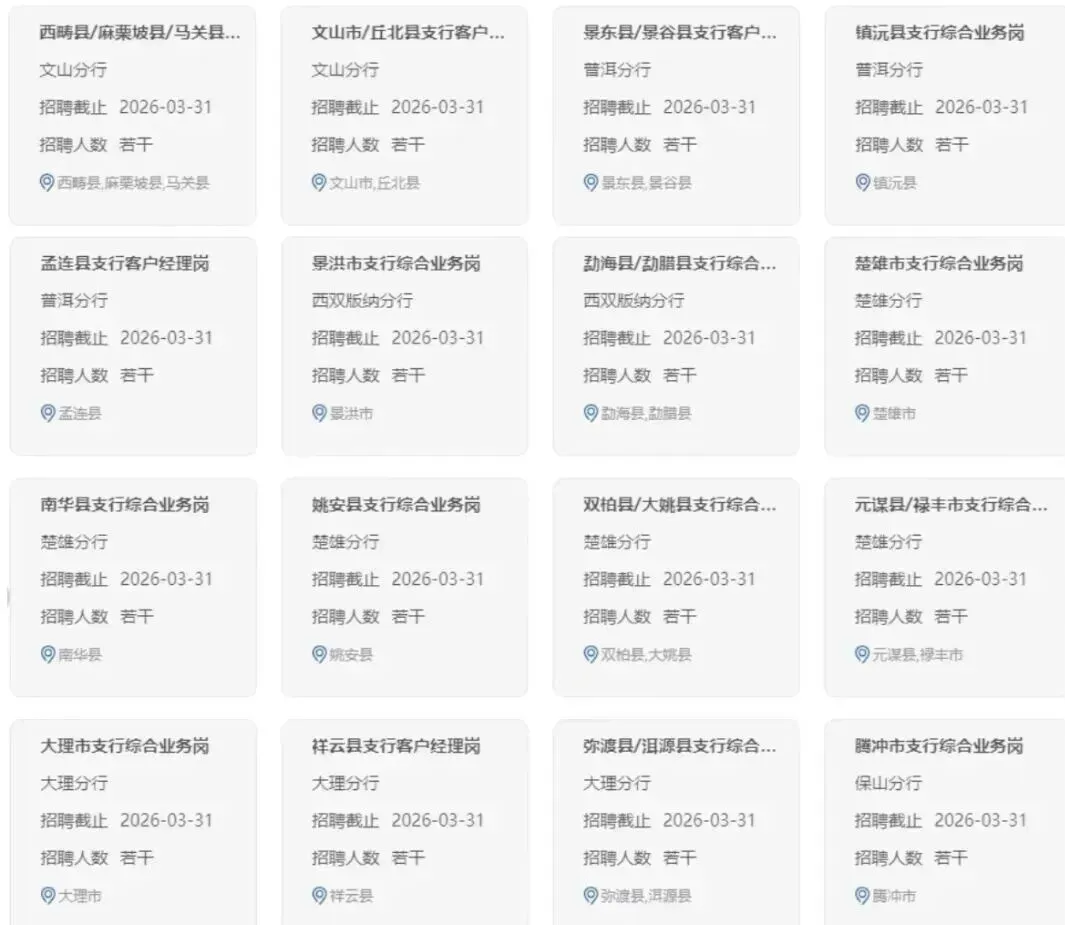 各岗位的工作职责、应聘条件和具体要求见中国农业银行招聘网站(https://career.abchina.com.cn)岗位详情。
