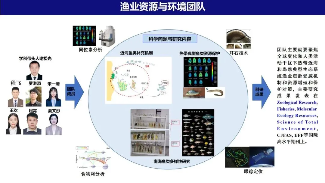 ▶ 近海和岛礁渔业资源与环境:聚焦热带近海和岛礁典型生态系统渔业资源和环境状况评估、威胁、保护、增殖与利用。
