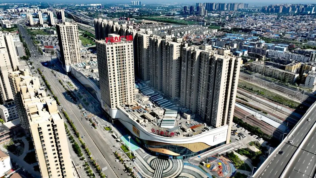 俯瞰梁园区港汇万达商业圈(无人机拍摄)。记者 邢栋 摄