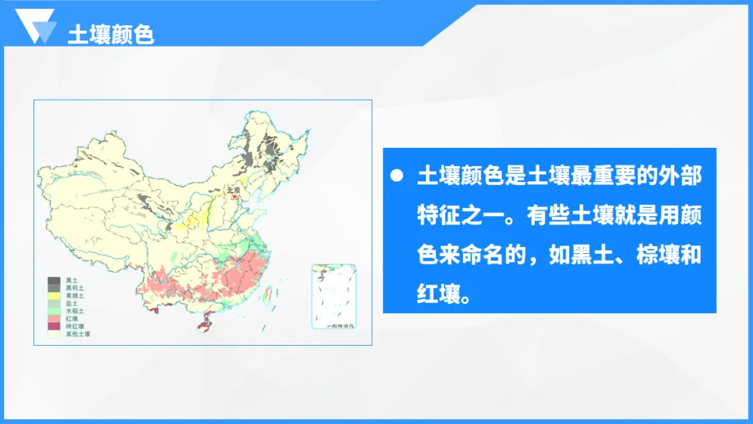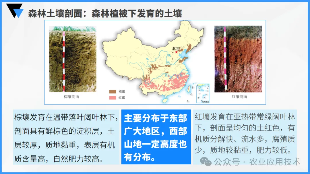 ②土壤的质地、颜色及分布