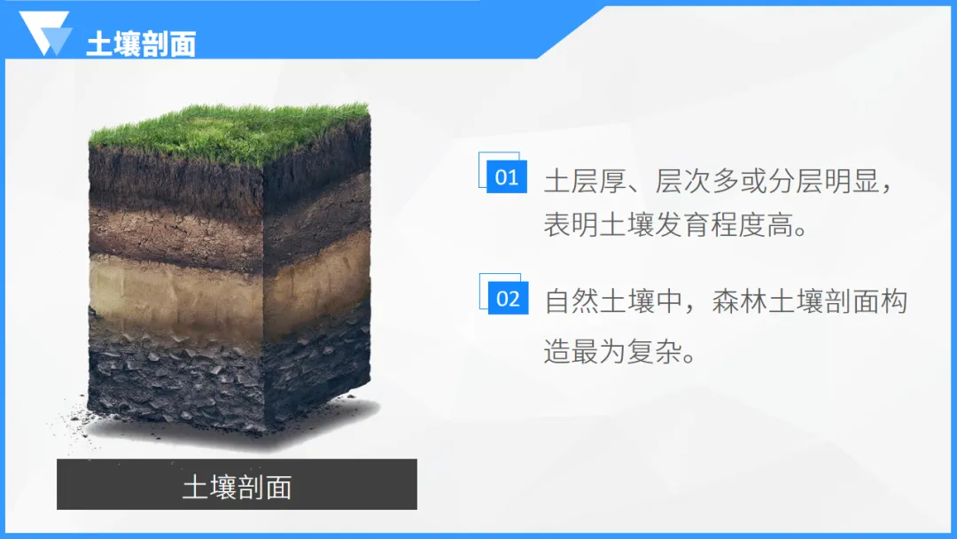通过土壤剖面图,介绍土壤的垂直分层情况,并通过森林和草原的剖面图,对比两者土壤剖面的特点。