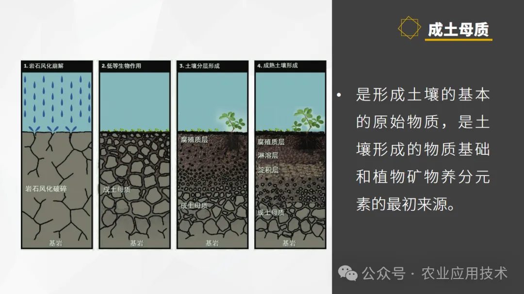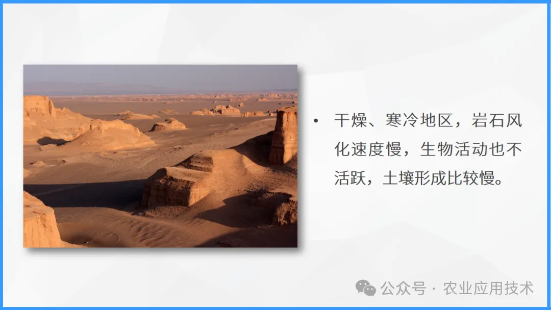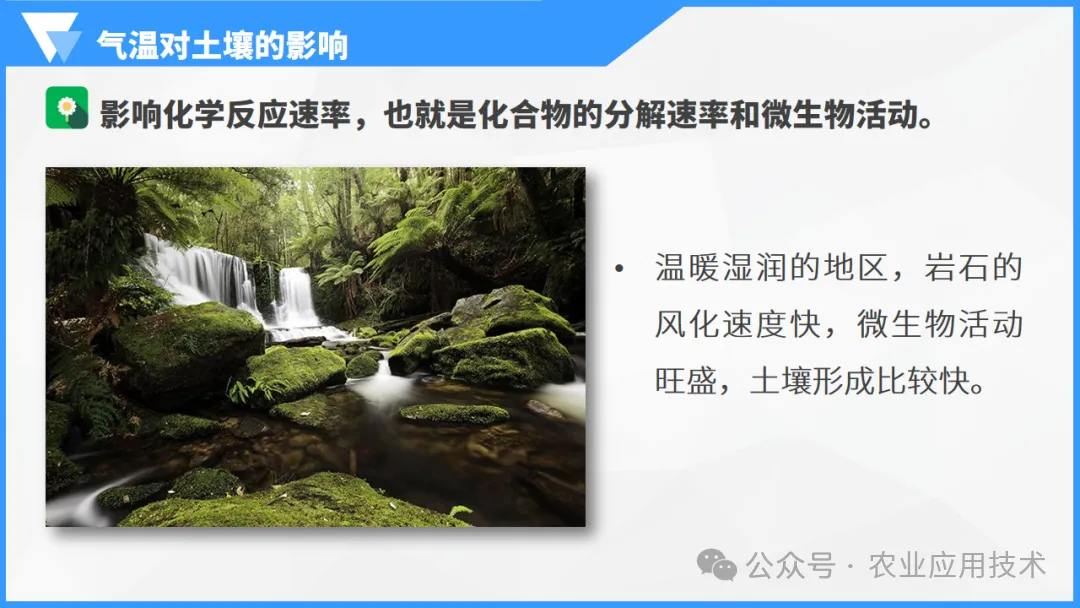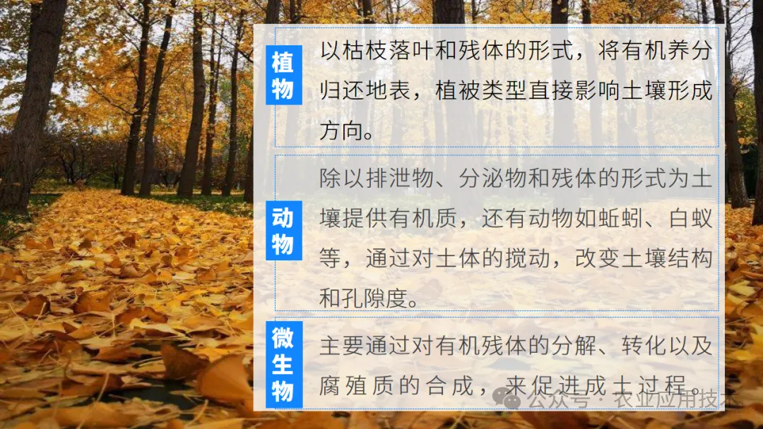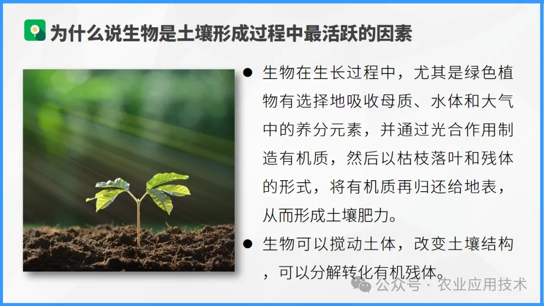 依次介绍成土母质的影响、气候中气温和降水、生物、时间以及人类活动对土壤形成的影响。谭老师地理工作室综合整理