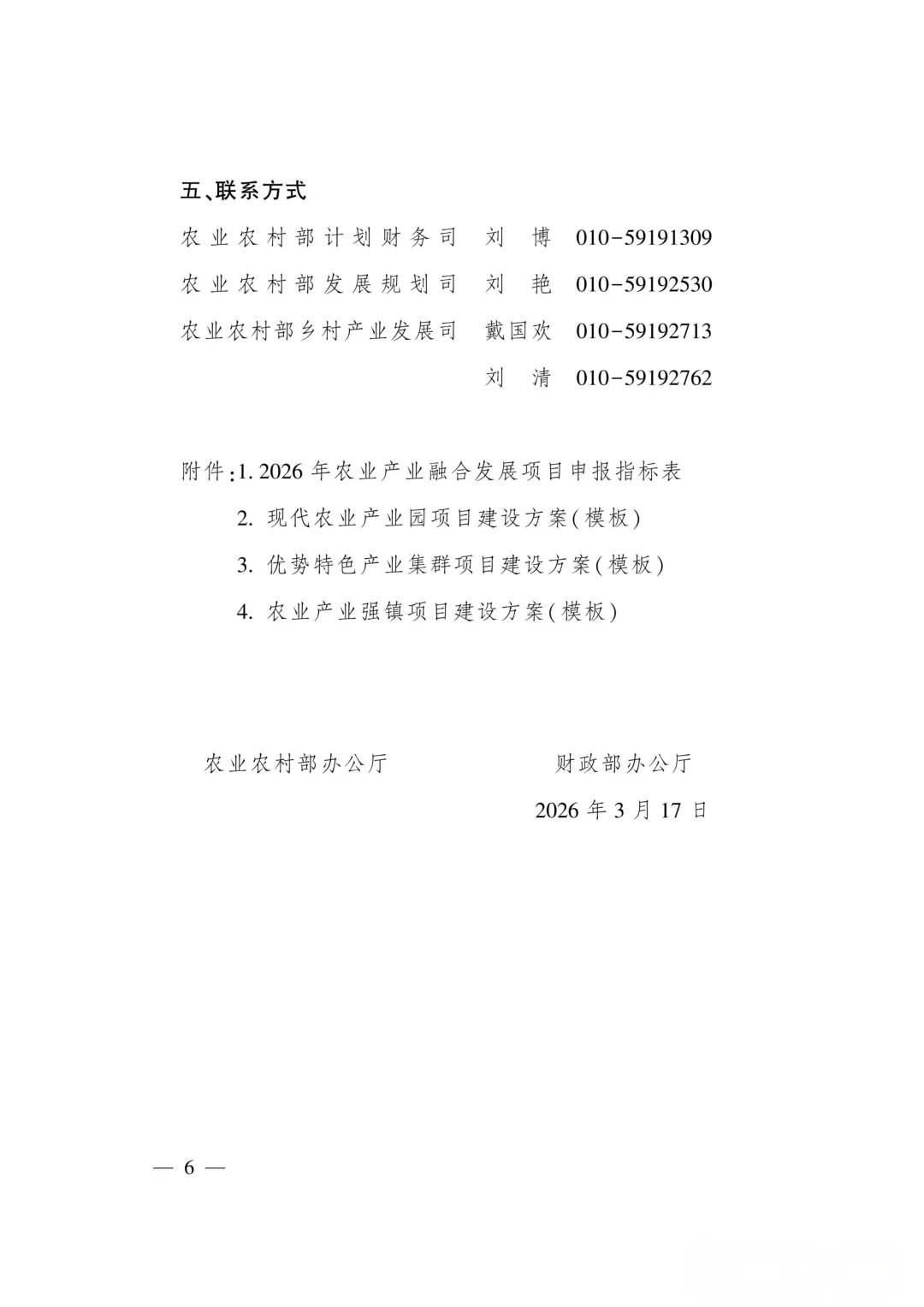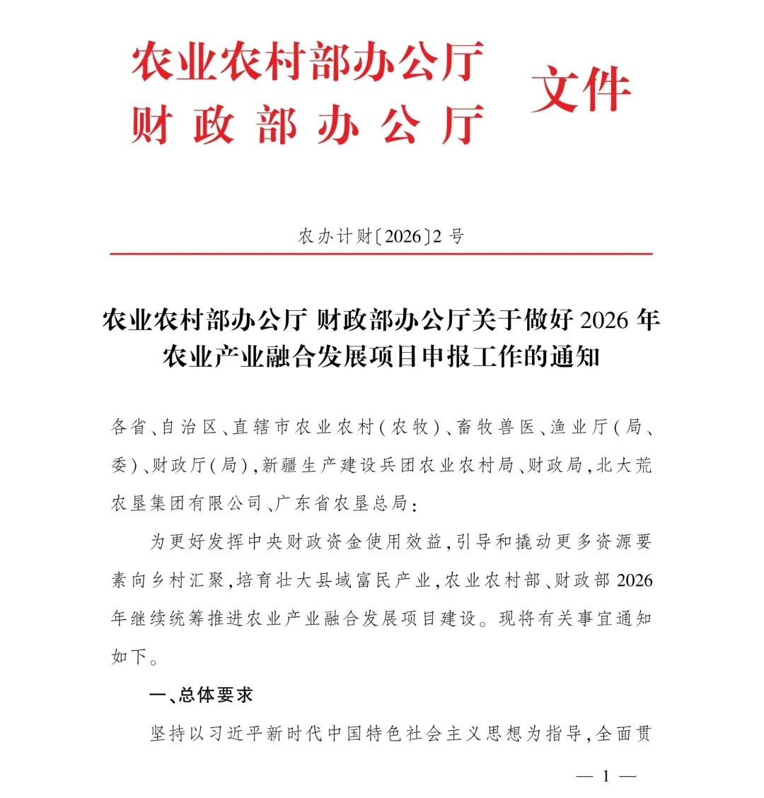 为更好发挥中央财政资金使用效益,引导和撬动更多资源要素向乡村汇聚,培育壮大县域富民产业,农业农村部、财政部2026年继续统筹推进农业产业融合发展项目建设。 现将有关事宜通知如下。