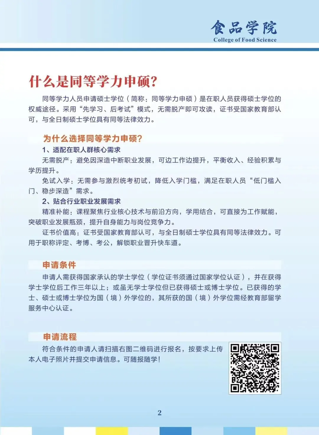 📢 四川农业大学食品学院同等学力申硕招生简章正式发布!以下为完整简章内容,扫描二维码即可报名。