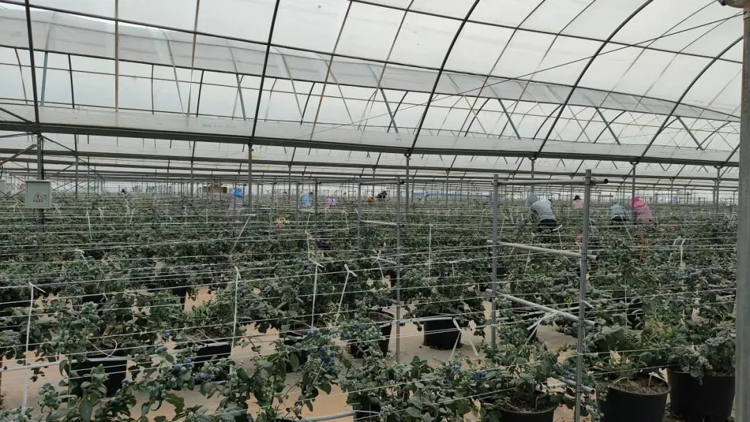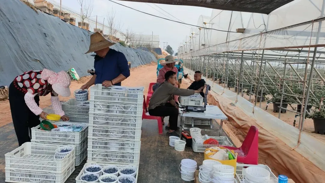 “基地于去年6月完成建设与苗木种植,12月便迎来首次采摘,预计产量可达200至300吨,当前日均采摘量约1吨。智慧农业系统让种植全程实现科学化管理,不仅病虫害明显减少,日常管理效率也大幅提升,蓝莓大果率超80%。”基地办公室主任孔海兰介绍,采摘后的蓝莓运往澄江冷库预冷,随后直供北京、上海、广州、深圳等一线城市。目前,基地正加紧办理进出口资质,计划将蓝莓推向东南亚市场,同时筹备新建冷库,进一步完善产业链条。