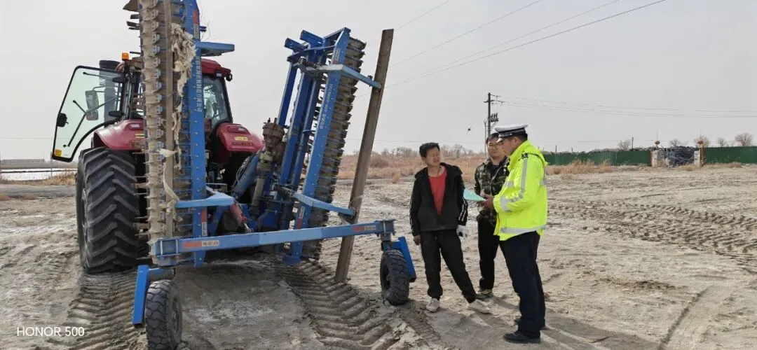 为切实加强大型农用机械、拖拉机等农用车辆道路交通安全管理,有效预防和减少道路交通事故。3月25日,尉犁公安交管联合县农业农村局,立足辖区农村道路交通安全实际,重点围绕“防风险、除隐患、保安全、护春耕”的工作目标,将执法检查与安全宣传有机结合,全面开展拖拉机交通违法行为整治,积极为春耕生产营造安全有序的道路交通环境。活动中,尉犁公安交管联合农业农村局采取“固定检查+流动巡逻”模式,在农用车辆通行集中路段设立临时执勤点,紧盯“一早一晚”农忙高峰,严查农用车辆违法载人、人货混装、无牌无证、酒后驾驶、未粘贴反光标识等重点违法行为,从源头提升安全防范意识。
