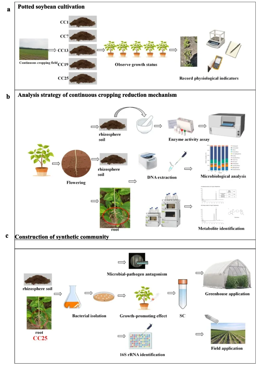 Conclusions 本研究展示了大豆单一种植的自我修复能力。它弥合了机制性见解(特别是微生物组-代谢物反馈)与可操作解决方案(如SC7接种)之间的鸿沟。因此,它推动了全球大豆生产的可持续集约化策略。