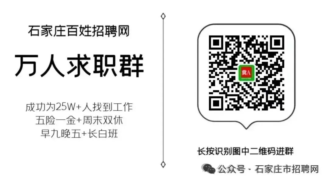 注:应聘时请说明来自“石家庄市招聘网”公众号