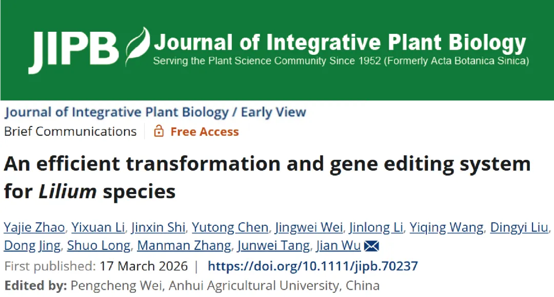 Zhao, Y., Li, Y., Shi, J., Chen, Y., Wei, J., Li, J., Wang, Y., Liu, D., Jing, D., Long, S., et al. (2026). An efficient transformation and gene editing system for Lilium species. J. Integr. Plant Biol.https://doi.org/10.1111/jipb.70237为了能更有效地帮助广大的科研工作者获取相关信息,植物生物技术Pbj特建立微信群,PlantBiotechnologyJournal投稿以及文献相关问题、公众号发布内容及公众号投稿问题都会集中在群内进行解答,同时鼓励在群内交流学术、碰撞思维。为了保证群内良好的讨论环境,请先添加小编微信,扫描二维码添加,之后我们会及时邀请您进群。小提示:添加小编微信时及进群后请务必备注学校或单位+姓名,PI在结尾注明,我们会邀请您进入PI群。