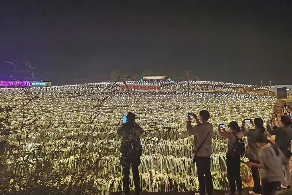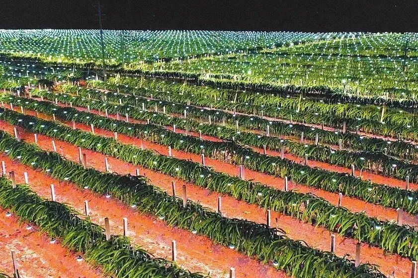 这下你明白了吧?火龙果基地定期上演的大型灯光秀,是为了让火龙果不睡觉,促进生产,从而让我们能在更多时候吃到美味营养的火龙果。