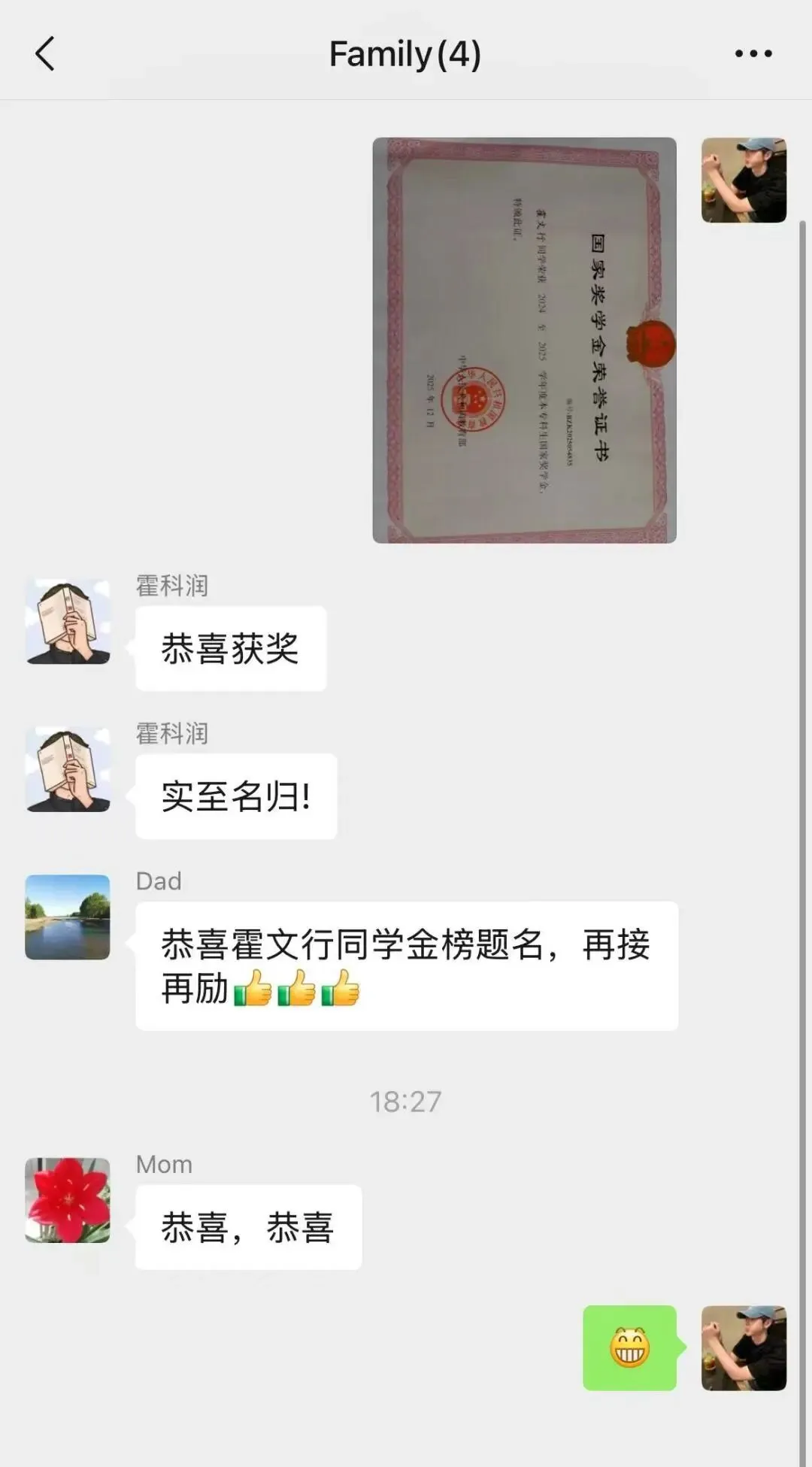 “收到贺信的那一刻,全家人都在为孩子的成长喝彩!”一位获奖学生的家长在回信中激动地写道。贺信寄出后,许多家长通过微信、手写回信等方式,向学院表达了内心的欣喜与感激。让我们一起来看看这些温暖的回响。