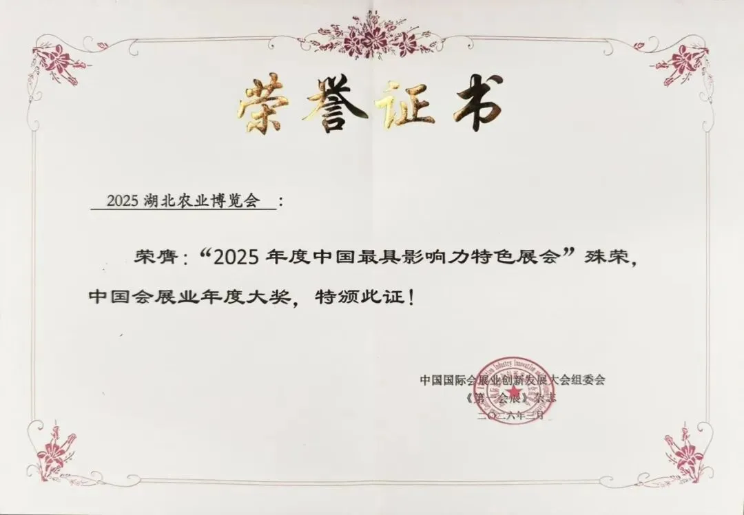 喜报!“2025湖北农业博览会”荣获中国会展业年度大奖