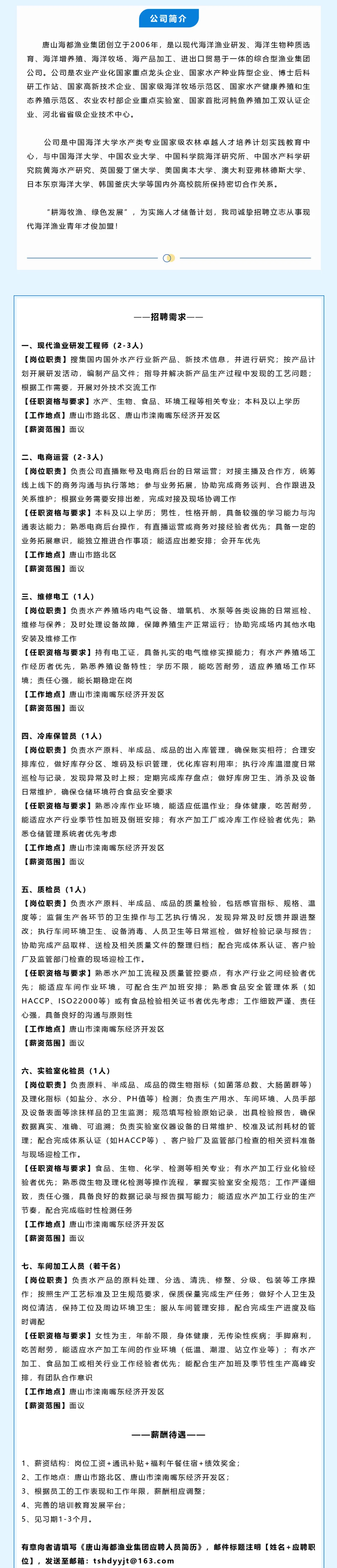 >2026年唐山海都渔业集团招聘!