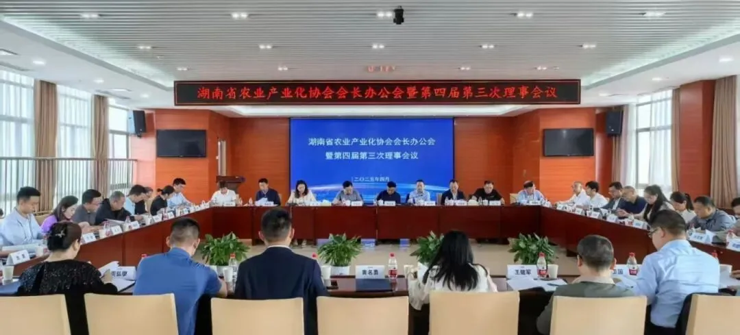 4月25日,湖南省农业产业化协会会长办公会暨第五届第三次理事会议在湖南省茶业集团股份有限公司召开。省政协原党组副书记、副主席武吉海莅临指导,协会专家刘宗林、周震虹、北冰,湖南农业集团党委副书记、副董事长、总经理杨正华出席会议。湖南省茶业集团、新五丰股份有限公司、九鼎科技(集团)有限公司、金健米业股份有限公司、湖南农业集团供应链有限公司、大湖水殖股份有限公司、裕湘食品有限公司、瑶珍粮油有限公司、永州天成肉类食品有限公司、长沙绿叶生物科技有限公司、湖南农业集团湘发小额贷款有限公司、湖南乡村产业有限公司、湖南康源沙田控股集团有限公司等13家副会长单位,望龙律所、子青鸿农业、衡岳中药、雪峰种业、补天药业、远景咨询、宁乡广东温氏、渔米之乡、舜华鸭业、鑫洋食品、红星农副产品大市场、唐人神等12家常务理事、理事单位负责人参加了会议,另外还邀请了大三湘茶油、天香生物、花明粮油、天府生态、怡清源茶业、酒鬼酒、湘窖酒业、明园蜂业、千万美乡公司等10多家优秀会员企业和贵州省铜仁市投资促进局驻长沙招商分局负责人参加会议。
