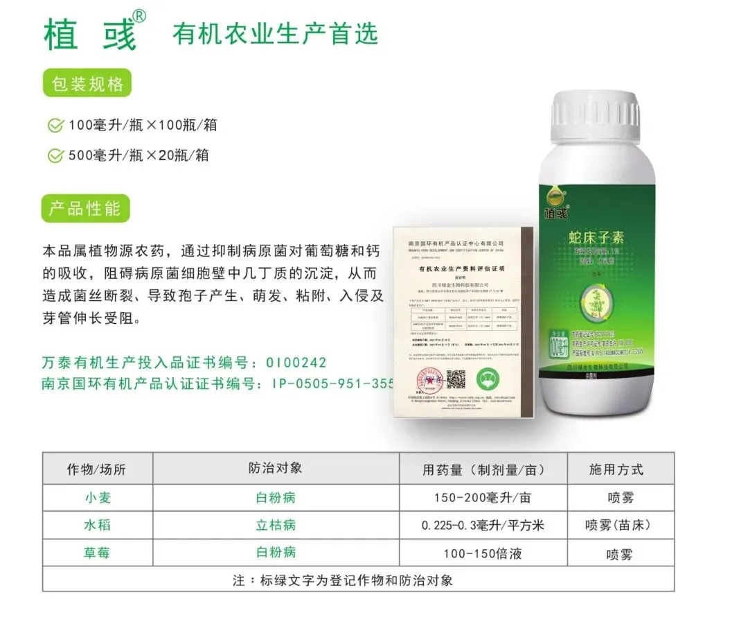 五、深耕植物源农药,四川绿金推出植彧®1%蛇床子素产品