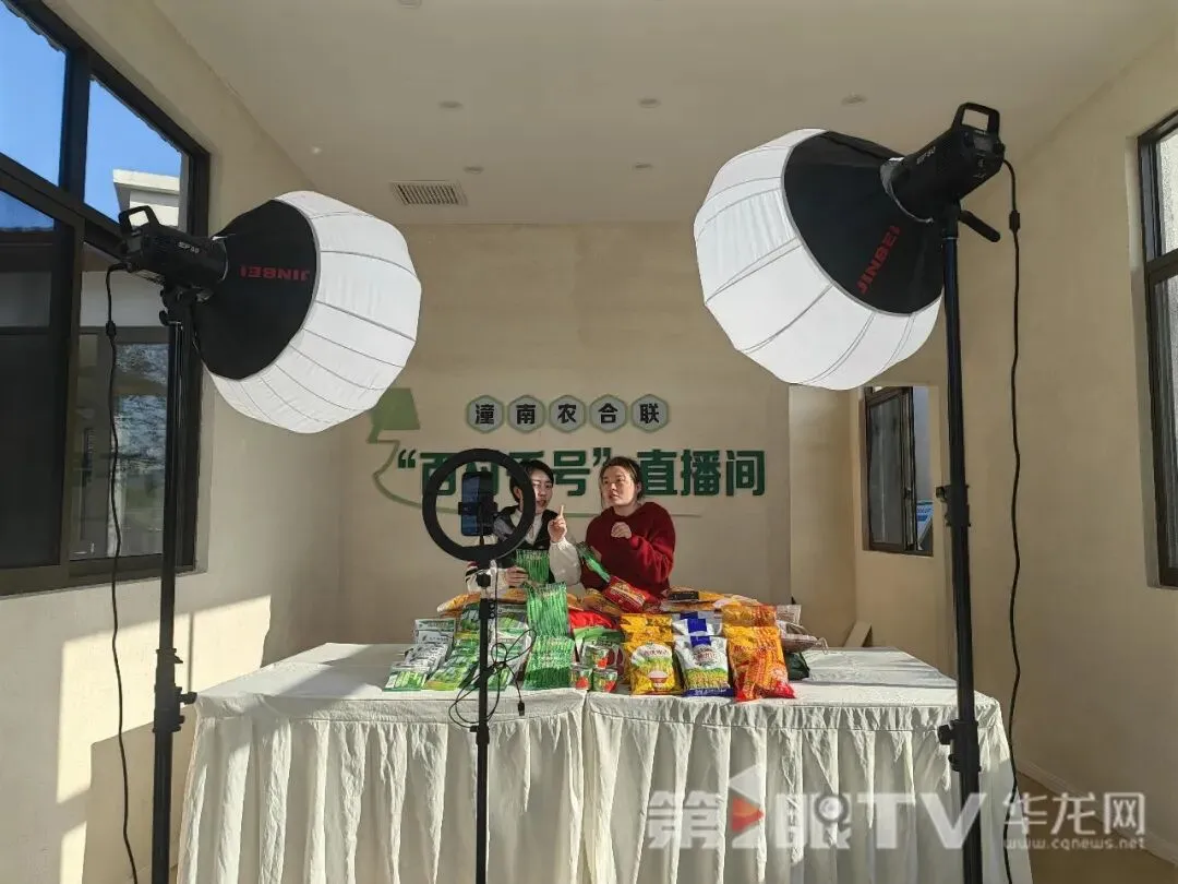 潼南区梓潼街道为农服务中心直播间,主播正在直播。第1眼TV-华龙网记者 冯珊 摄