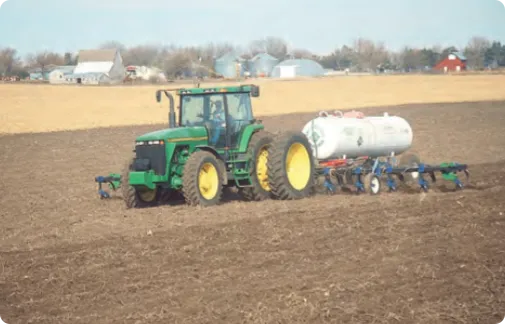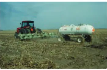 正如前文所讨论的,氮是一种很容易通过多种途径从土壤中流失的营养元素。因此,如果能在作物吸收氮元素的时期之前将氮肥施用到土壤中,那么植物就能更有效地利用这些氮素。理想情况下,可以在一个生长季节内多次施用氮肥。使用中心支轴灌溉系统进行施肥,或是使用高架喷施装置,都是实现多次施肥的有效方法。利用中心支轴灌溉系统进行施肥时,还可以利用叶绿素测定仪来检测植物的氮素缺乏情况,从而根据作物的需求来决定施肥量。侧施氮肥也是一种有效的施肥方式,因为这样可以将氮肥施用在玉米和高粱对氮素需求最大的时期。对于玉米和谷物高粱等行栽作物来说,在播种前或播种时施用氮肥仍然比在秋季施用更为有效。不过,在某些土壤条件下,秋季施肥也是一种可行的选择。在这种情况下,生产者应在秋季施用无水氨肥(因为其不易被土壤中的水分冲走),前提是土壤质地较细,且土壤温度平均在50华氏度以上,并且这种状态能持续一周或更长时间。无论是秋季还是春季的播前施肥,使用像N-Serve或DCD这样的硝化抑制剂,都能有效减少氮素的流失。对于冬小麦来说,晚冬或早春时进行追肥,可以让生产者先了解土壤的湿度状况和作物的生长情况,从而确定合适的施肥量。当氮肥被施用于土壤表面之下时,农作物能够更有效地利用这些氮素。而将氮肥直接施在土壤表面的话,由于氨气的挥发或径流作用,会有部分氮素白白流失。这就是其中一个原因。图9和图10氮肥的施用时间:播种前施肥(上图),以及播种时施肥(下图)。图11与图12氮肥的施用方式:侧施(上图)和撒施(下图)。为什么需要通过注入方式施用的无水氨,有时会比那些可以直接施用于土壤表面的尿素或脲醛酸溶液更适合作为氮肥来源呢?一般来说,只要氮肥的施用方法得当,各种氮肥在农业应用效果上都是相当的。如果农民必须将氮肥施于土壤表面,那么采用条施的方式可以提高效率——这种方式能使肥料更加集中,从而减少土壤与肥料之间的接触面积。此外,喷灌也是一种有效的施肥方式,只要施用量不过量即可。在内布拉斯加州,常用的氮肥主要有无水氨(含氮量82%)、尿素(含氮量44%至46%)、UAN溶液(含氮量28%至32%)、硝酸铵(含氮量33%至35%)以及硫酸铵(含氮量21%)。其他肥料中也含有相当量的氮元素,但它们主要被用作除氮以外的其他营养元素的来源。只要使用得当,上述所有肥料都能发挥良好的施肥效果。从历史上看,无水氨是最便宜的氮肥,但其施用方式需要将氨直接注入土壤中,这种方式的成本高于撒播或表面施肥的方式。在施肥后进行耕作、灌溉或降雨处理,可以有效减少尿素肥料中氮素的损失。最近,人们开始使用一种名为Agrotain的尿素酶抑制剂来改善尿素的施用效果。这种抑制剂含有N-(正丁基)硫代磷酸三酰胺这一活性成分,它能抑制尿素酶的活性,从而延缓尿素分解为铵盐和氨的过程。根据温度的不同,这种抑制作用可以持续数周之久。这样一来,尿素就能更有效地留在土壤中,避免因雨水或耕作而造成的氮素损失。使用尿素酶抑制剂有助于降低施肥风险。在少耕、残茬较多的种植条件下,尿素肥料容易从土壤表面流失,从而造成氮素的损失。与硝化抑制剂类似,脲酶抑制剂也不能确保每年都能提高产量,但它们能在气候条件不利于氮素保留的年份里,有效防止产量的下降。氮肥统计与核算相关事项