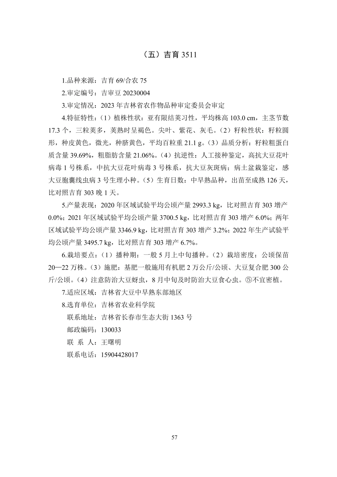 早熟区(3 个):吉育 203、雁育豆 11 号、吉育 2525。