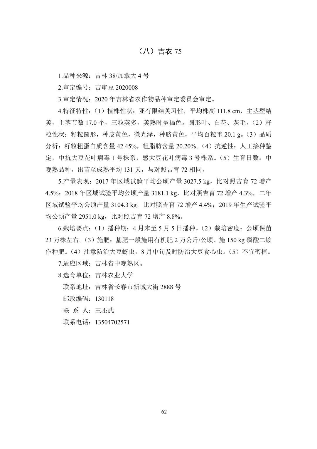 中晚熟区(1 个):吉农 75。