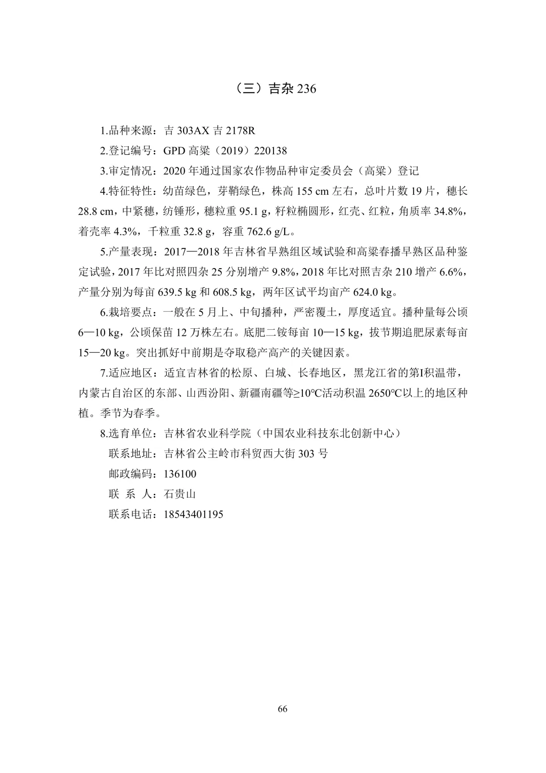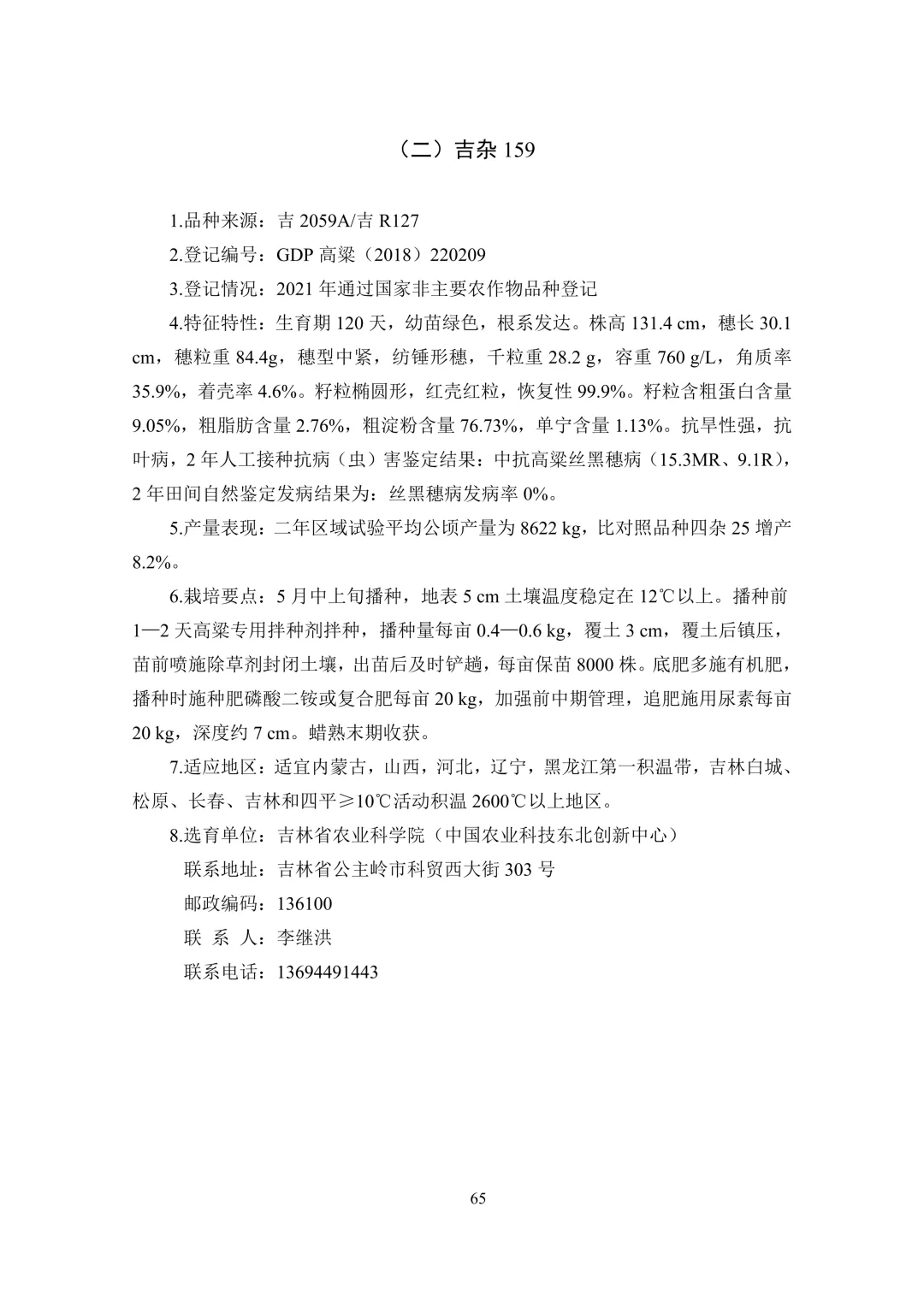 高粱(3 个):吉杂 320、吉杂 159、吉杂 236。