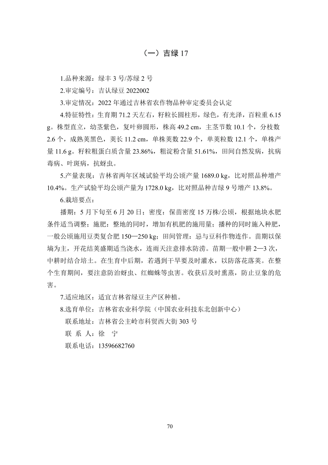 绿豆(1 个):吉绿 17。
