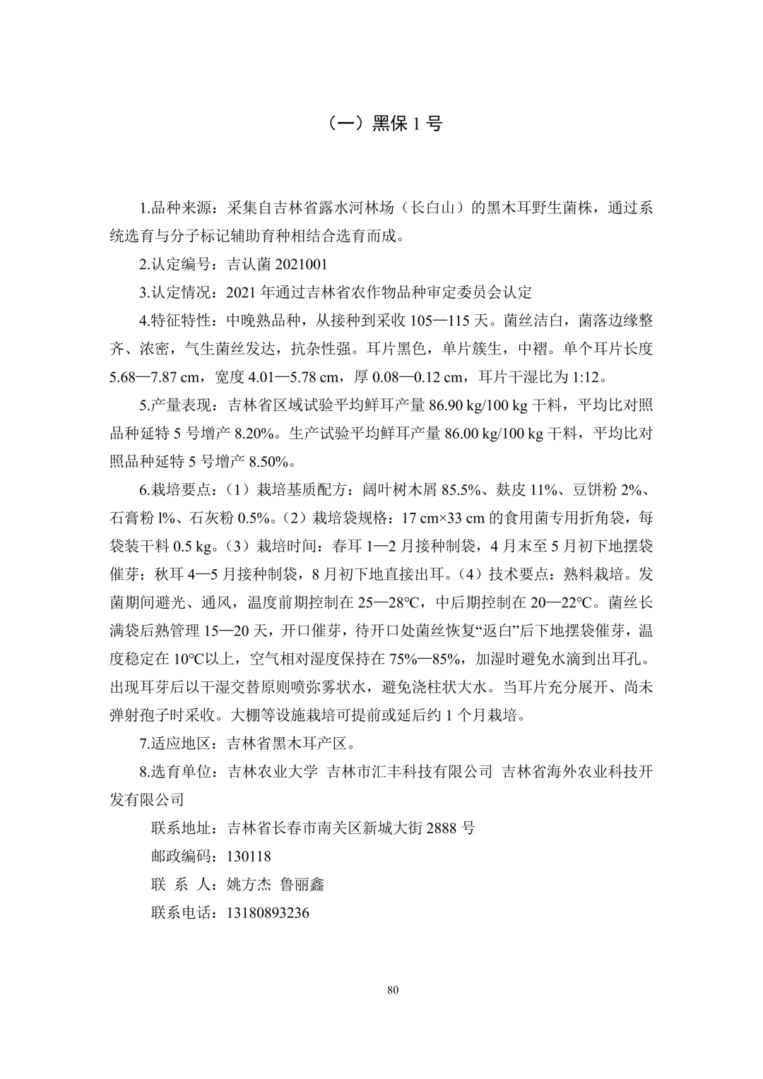 (六)食药用菌主导品种(1 个)