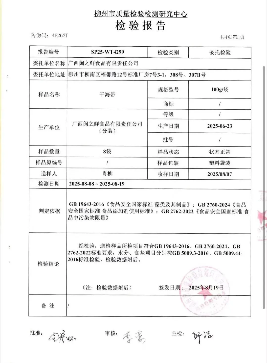 干货类(粉丝、虾米、干贝、黑凉粉、红枣)检测报告