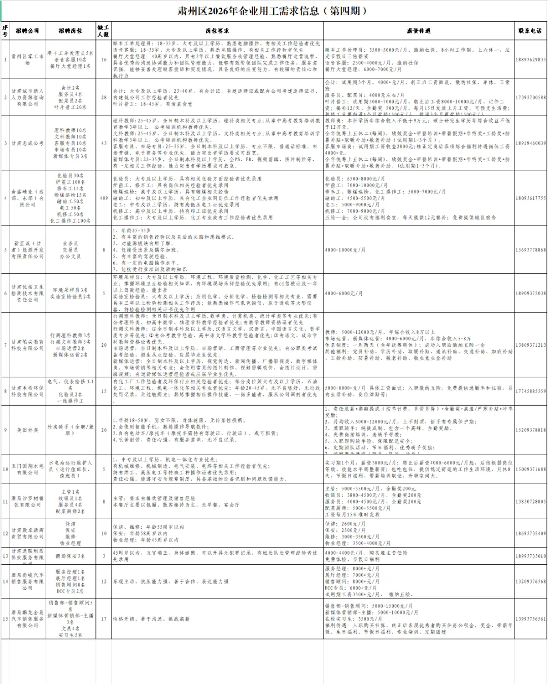3. 工作地点:肃州区飞翔路80号(甘肃巨龙农业物流港)