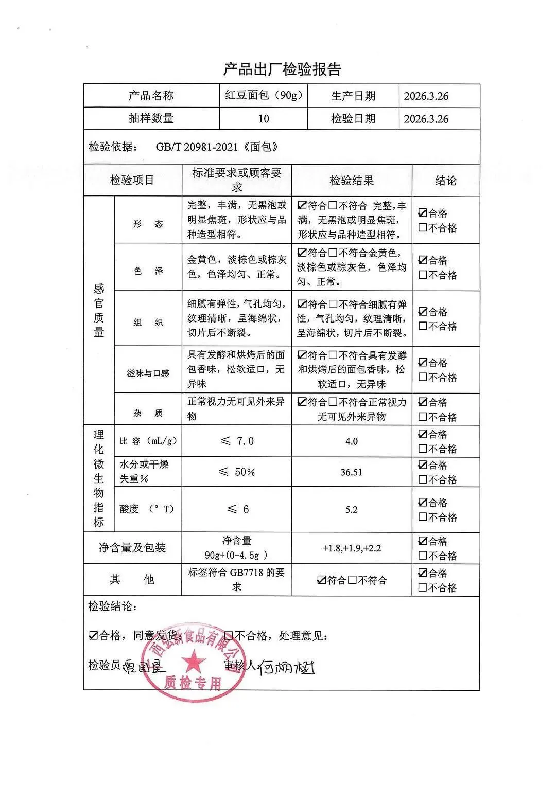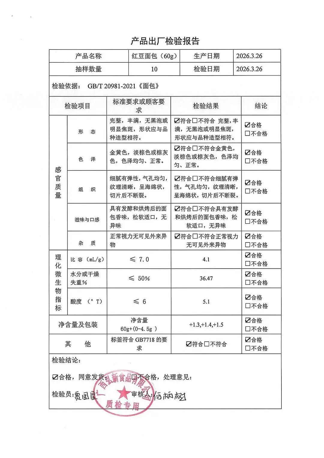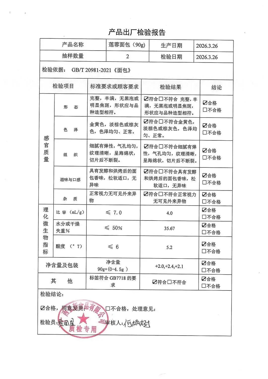 包子、面包、面粉、淀粉、牛奶检测报告