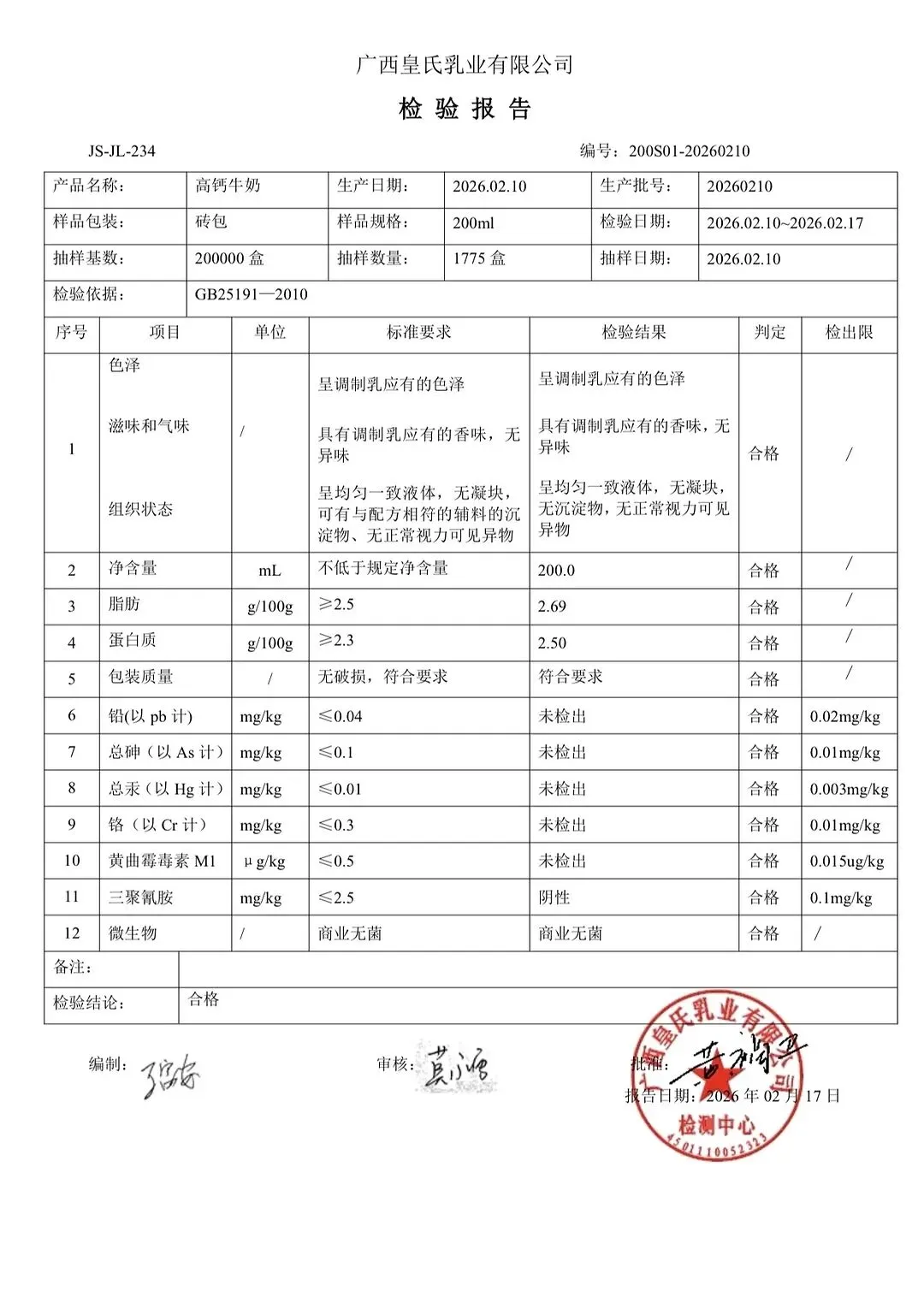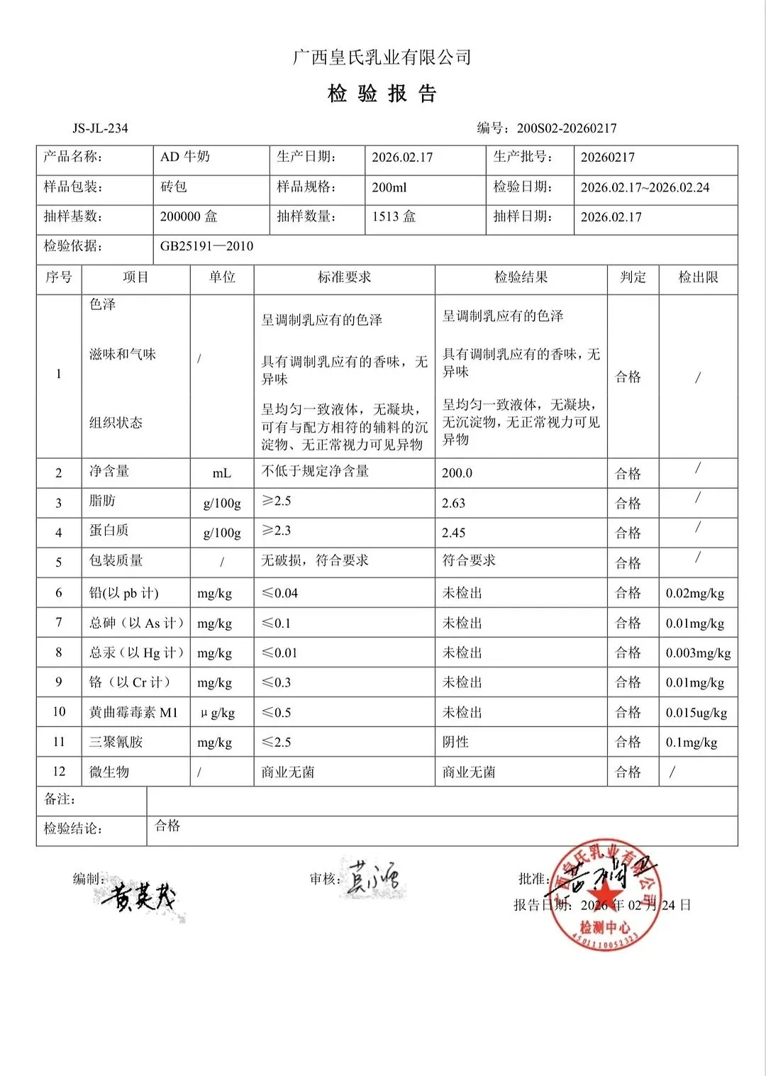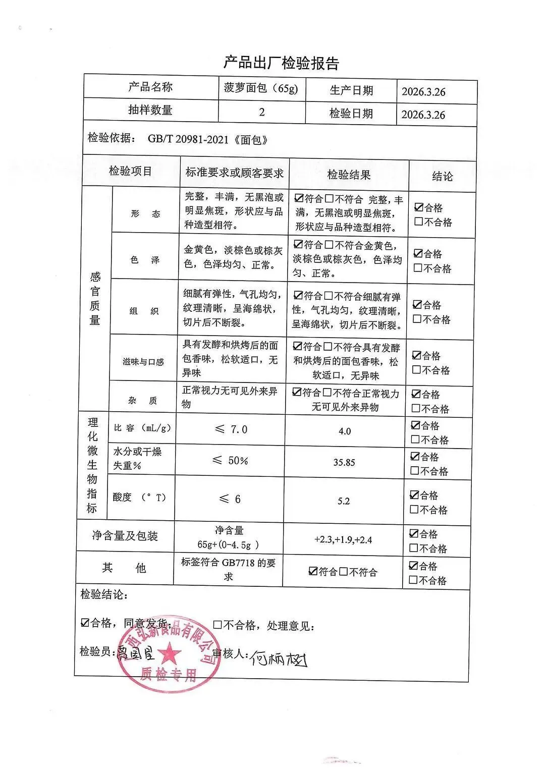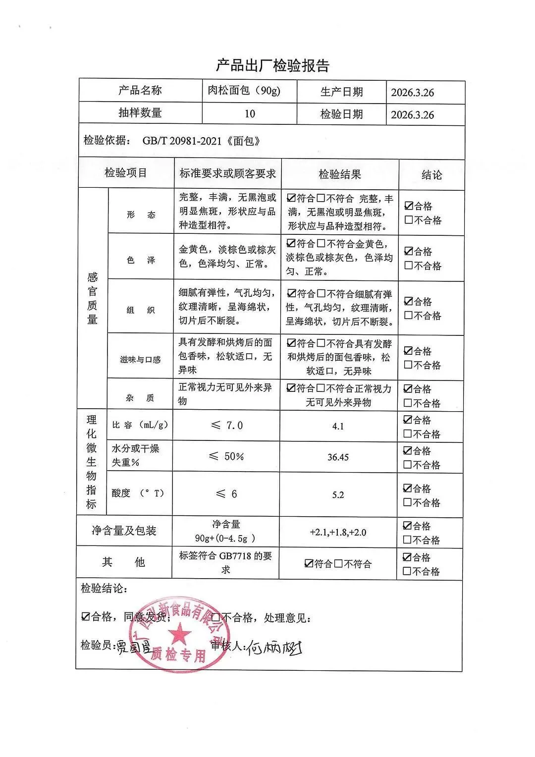 包子、面包、面粉、淀粉、牛奶检测报告