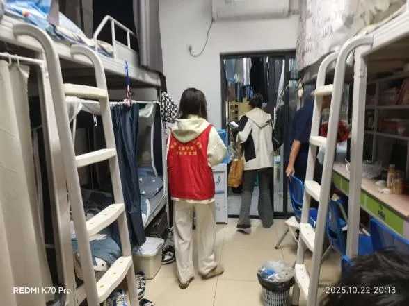 会议结束后,全体人员前往22栋学生宿舍楼开展检查工作。检查内容涵盖了宿舍卫生状况、安全设施、违规电器使用情况、宿舍文化建设等多个方面。检查过程中,工作人员秉持着“办实事、解难题”的工作理念,认真细致,不放过任何一个细节。他们对宿舍内的卫生死角、杂物堆放等问题进行了重点检查,并提醒同学们注意保持宿舍整洁。同时,工作人员还对宿舍内的安全设施进行了仔细检查,确保消防设施完好、电线插座无安全隐患。对于违规使用电器的行为,工作人员及时制止,并向同学们宣传安全用电知识,强调违规电器可能带来的严重后果。