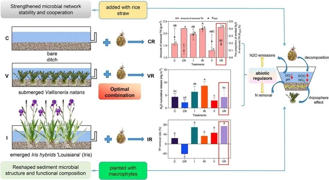 该研究强调了非生物因素在驱动氮去除和N2O减排中的主导作用,为设计低碳农业排水系统提供实践指导。