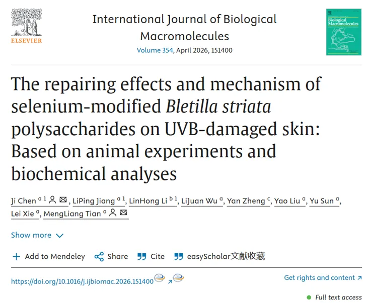 四川农业大学农学院田孟良教授团队攻克这一难题,首创叶面硒肥施用技术,实现白及天然富硒与多糖结构改性,制备出安全高效的硒修饰白及多糖(Se BSPs),相关成果发表于《International Journal of Biological Macromolecules》(2026, 354: 151400),为药用植物安全高值化栽培提供重要范式。