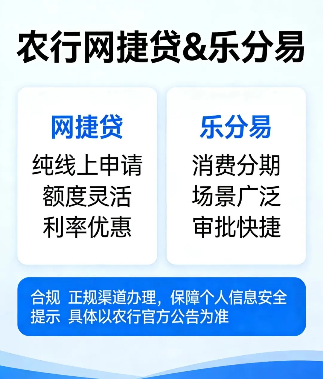 农行网捷贷是我行推出的纯线上信用消费贷款,全程自助办理、系统自动审批,专为个人合法消费需求打造,资金严禁用于购房、投资、经营、炒股等非消费领域。
